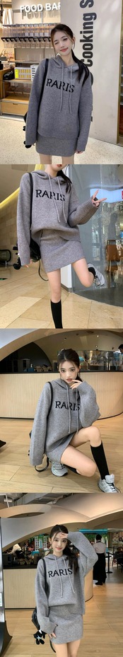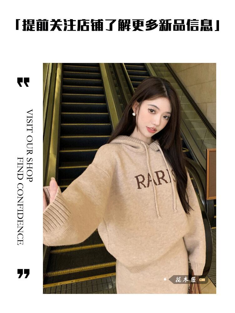 スタイル怠惰なスタイルスーツスカート女性春 2024 新しい長袖フード付きセータースリムスカートツーピーストレンディなセット ロング スプリング 春物 0921928401751638