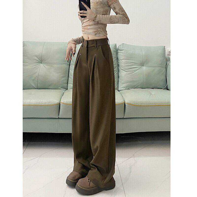 エドハイウエストスリムカジュアルパンツ女性 2024 春の新しい多用途ルーズワイドレッグフロアレングススーツロングパンツ スプリング 春物 092192244475806