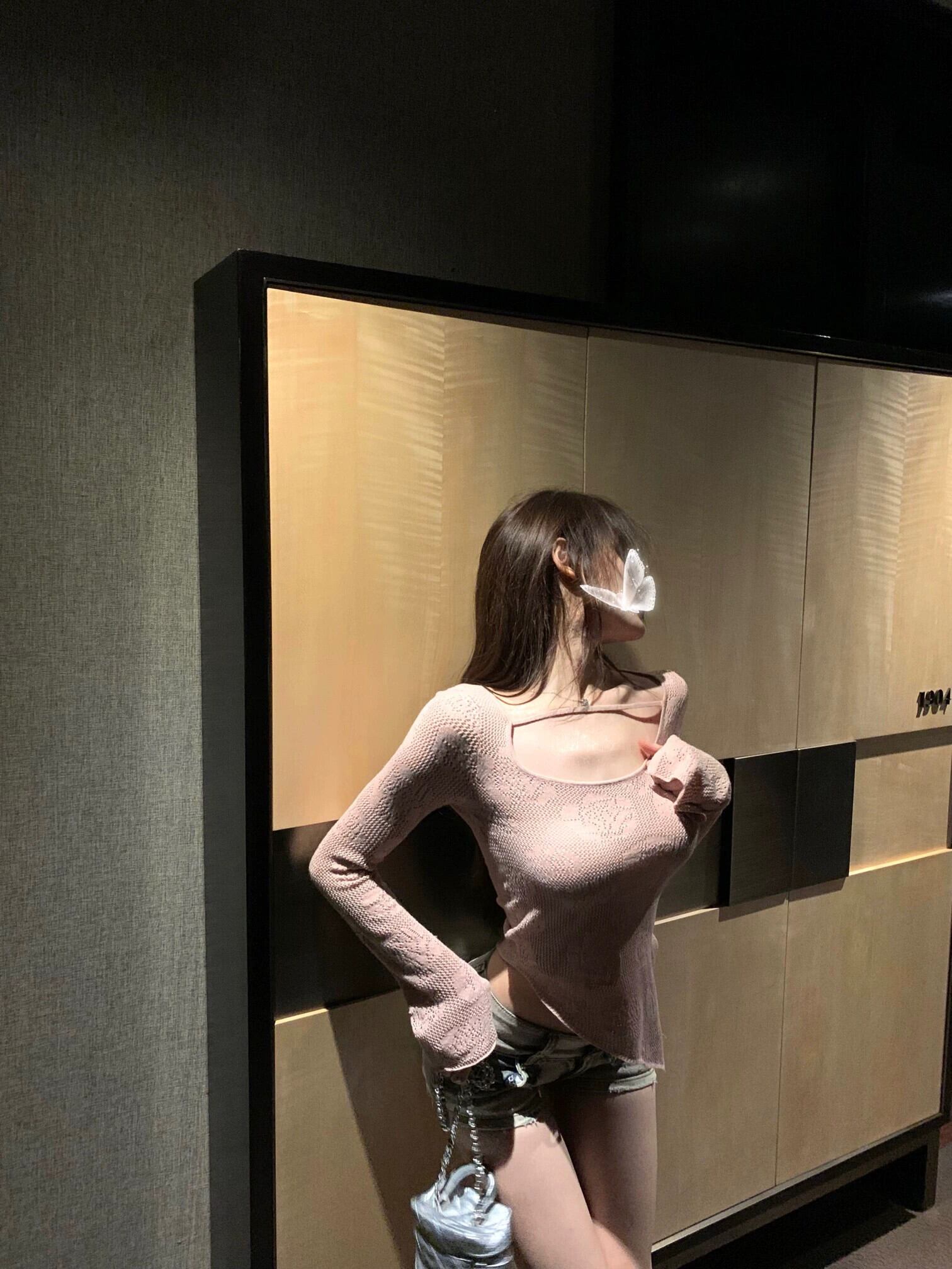 ニッチ薄い長袖スクエアネックセーター女性 2024 春の新しい不規則なスリムフィットトップ ロング スプリング 春物 スクウェア 0921923529162877