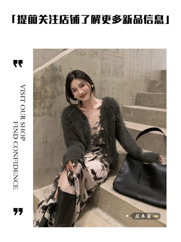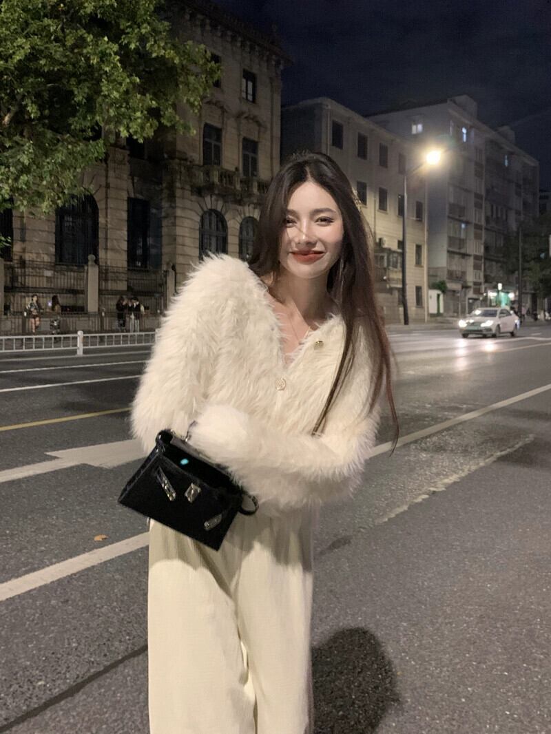 -終了 V ネック模造ミンクベルベット長袖セーター女性春 2024 新しいショートスタイルスリミングウールニットカーディガン ロング スプリング 春物 Vネック 092198369334551