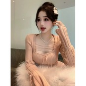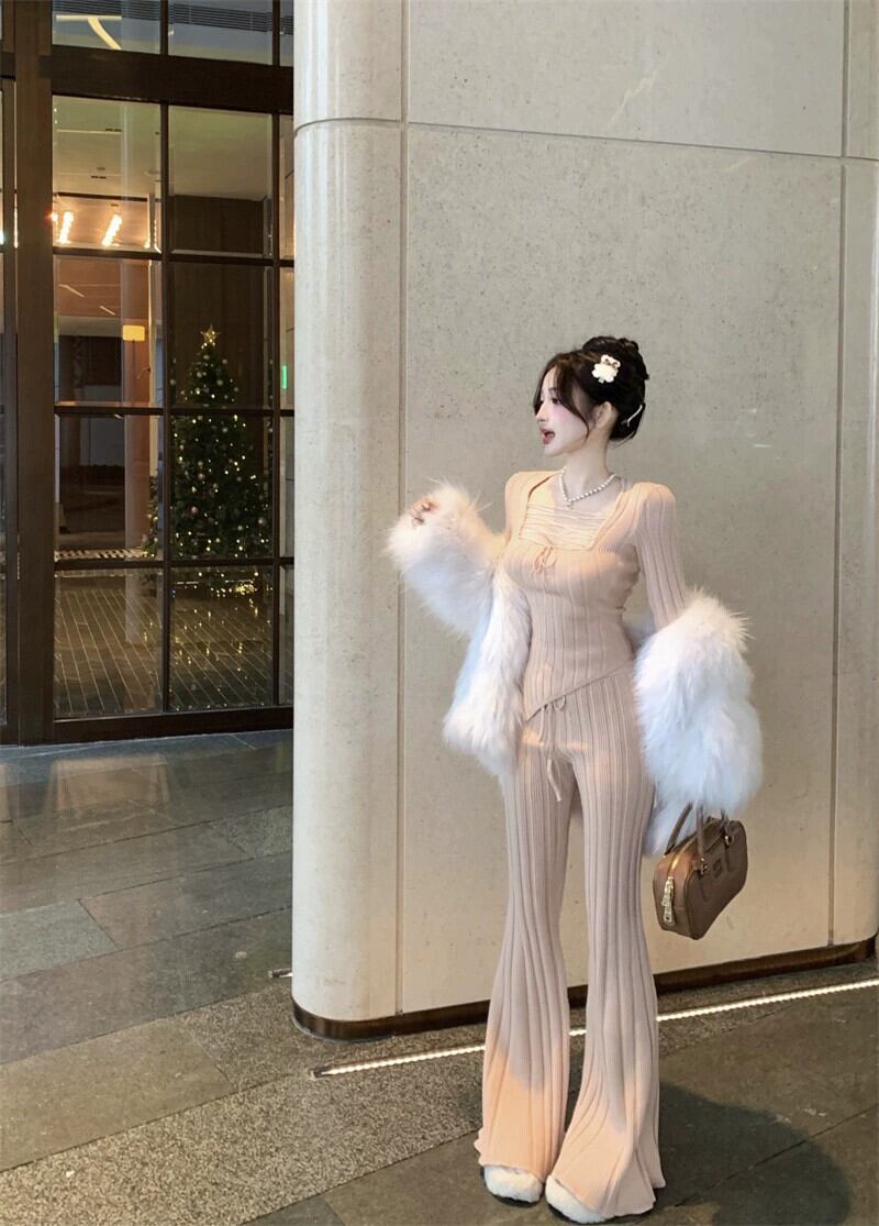 純粋な欲望怠惰なスタイルのファッションスーツの女性の春 2024 新しい長袖ニットトップマイクロフレアパンツ 2 点セット ロング レッド スプリング 春物 0921963862113729
