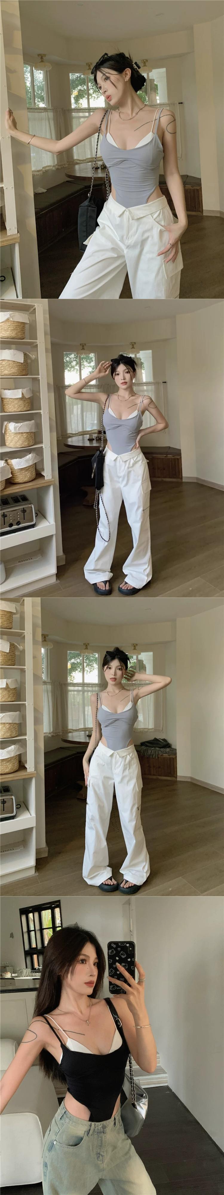 アメリカンキャミソールベスト女性春の純粋な欲望のセクシーなボトムとスリムなショートワンピーストップを外で着用します スプリング 春物 ピュア 0921953416434082