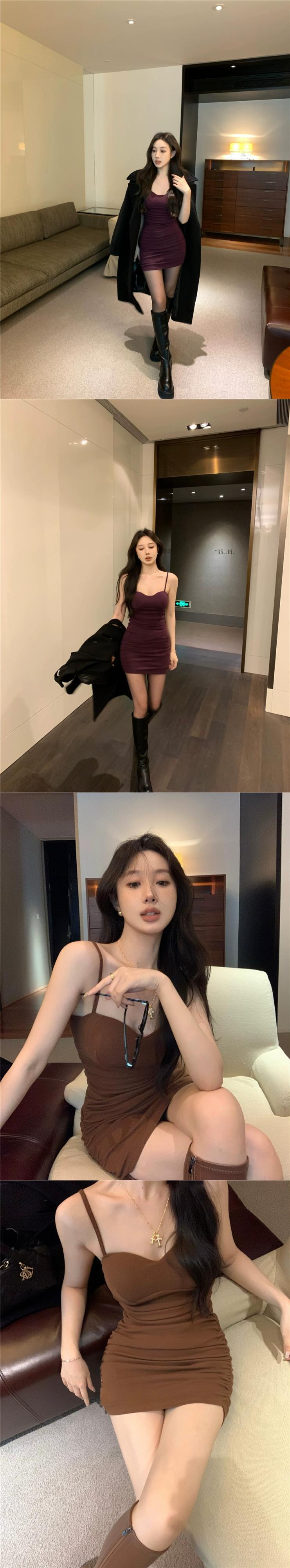 胸パッド付きホットセクシーなストラップドレス女性春 2024 新しいスタイルプリーツインナースリムフィットとヒップスカート スプリング 春物 0921969410298511