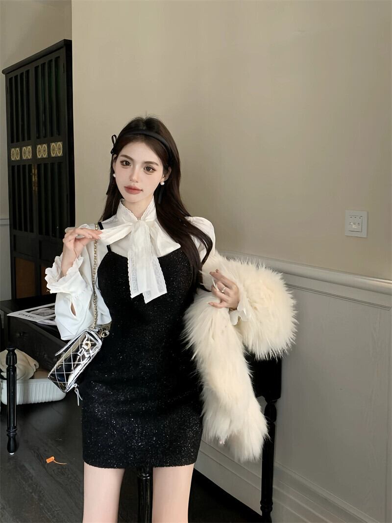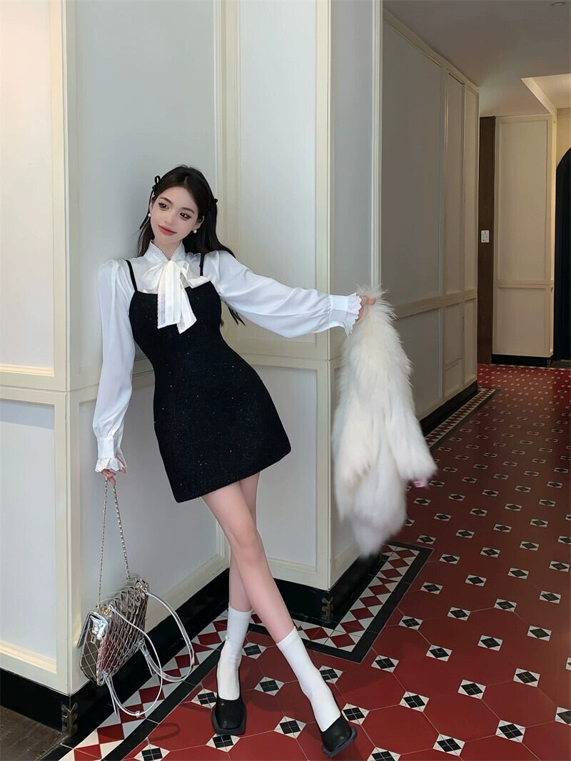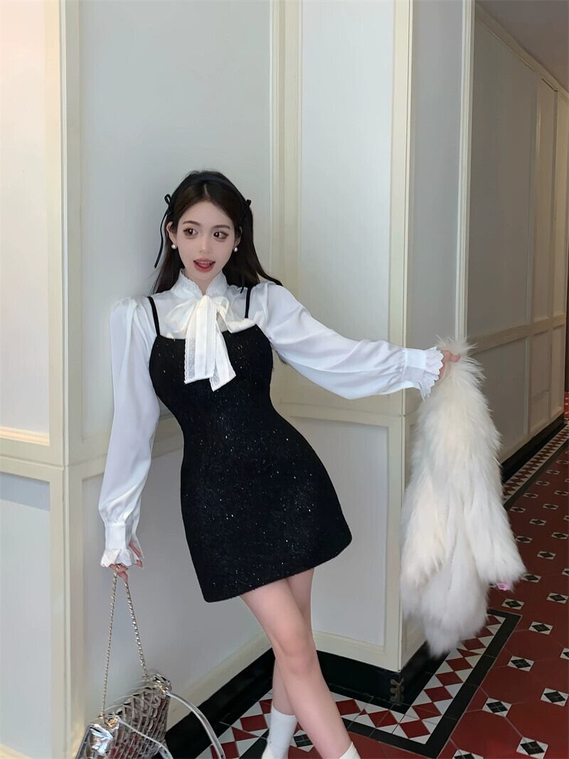 フランス社交界のシャオシャンスーツ女性の 2024 年春の新作サスペンダードレスハイエンドレースシャツ 2 点セット スプリング 春物 0921938040006503