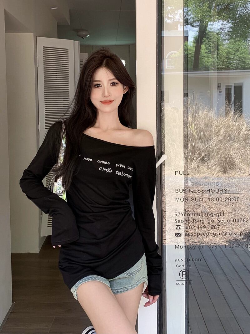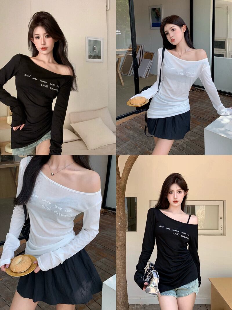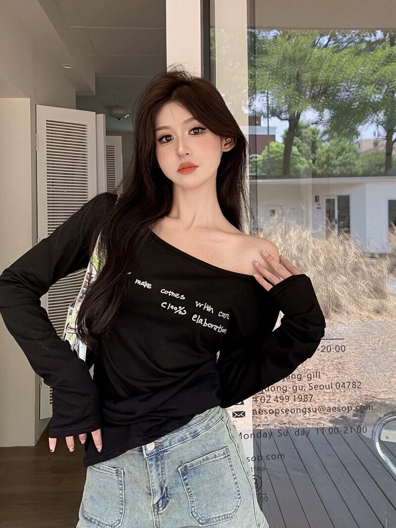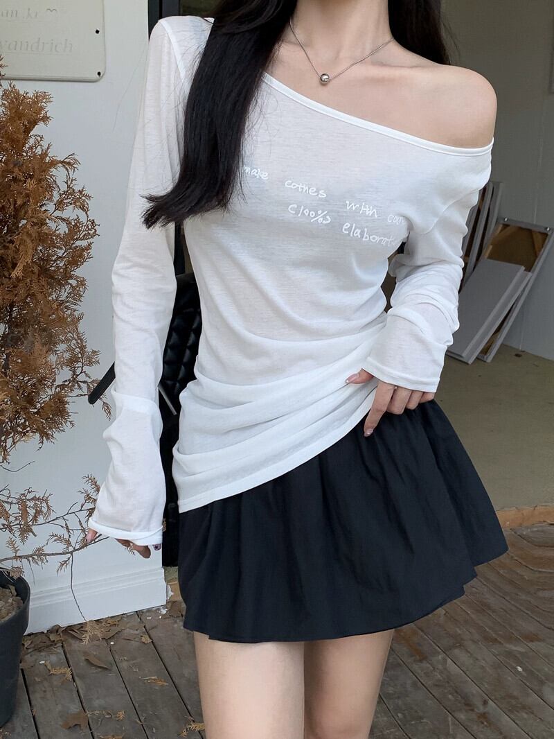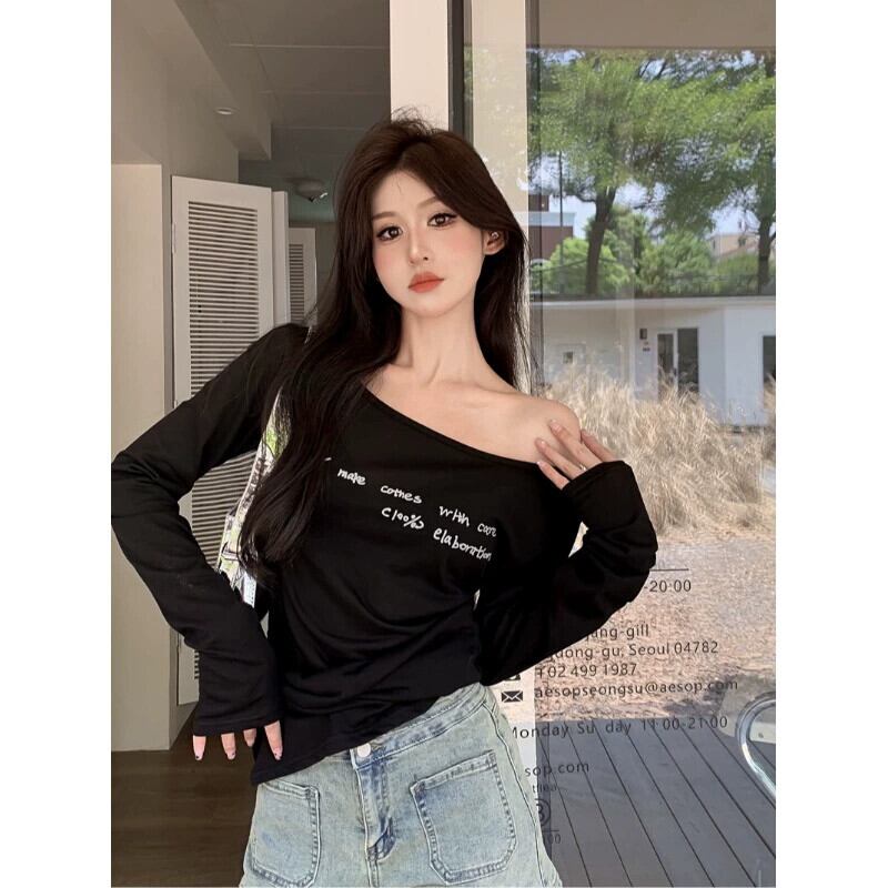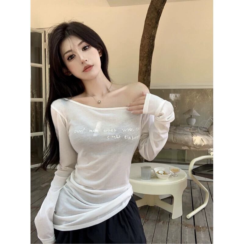 セクシーな純粋な欲望スタイルレタープリント薄型 Tシャツ女性春 2024 新しいスタイルミッドレングススリムスリムトップイン スプリング 春物 ピュア 0921941707719456