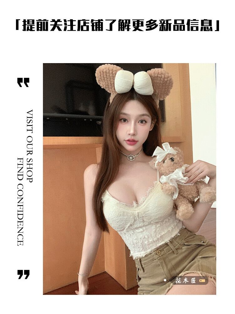 ホットレース V ネックキャミソール女性の 2024 年春の新スタイルショートスリムスリムノースリーブボトムシャツトップ スプリング 春物 Vネック 0921957787424058