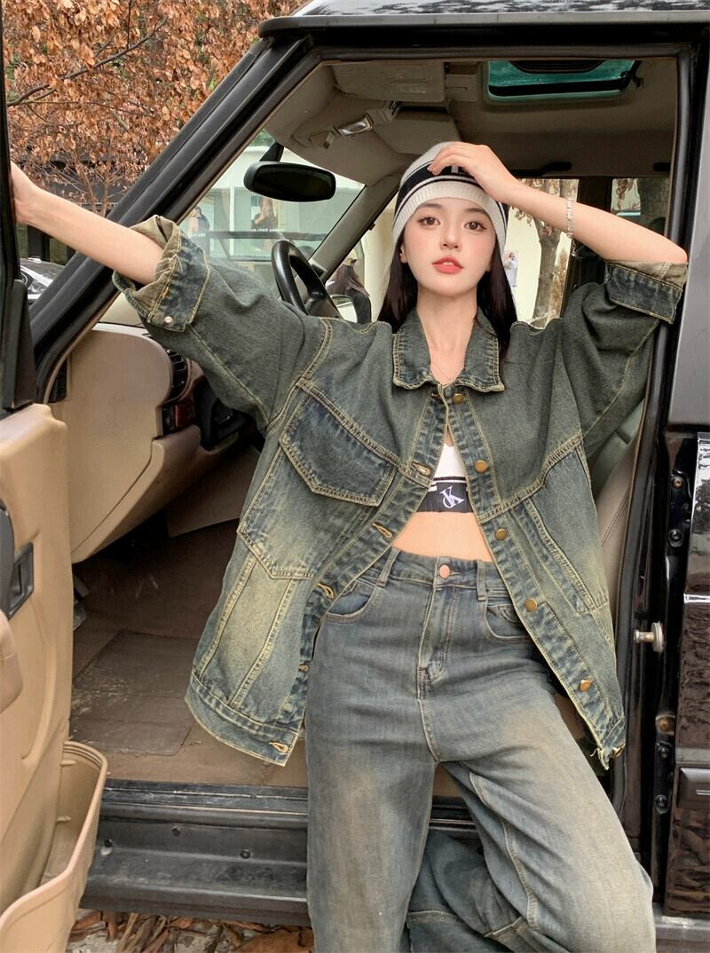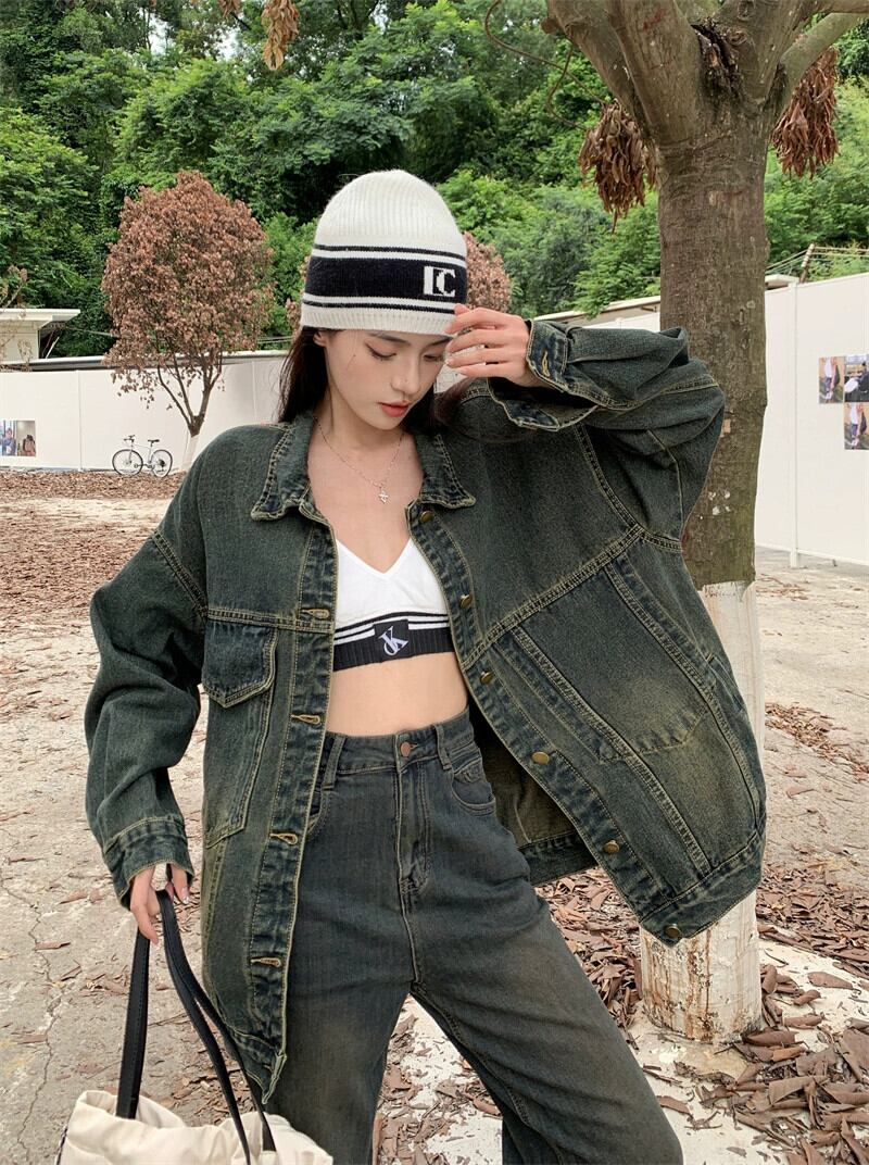 インターネット有名人のバージョンのレトロなノスタルジックなデニムジャケット女性春 2024 新作イン多目的ルーズ痩身カーディガントレンディ スプリング 春物 0921969786257815