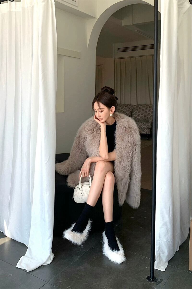 色:グレーのドレス,ネイビーブルーのドレス,ファーコート