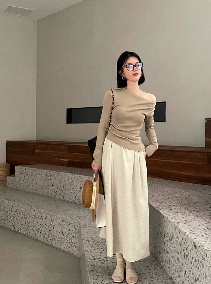 色:ライトアプリコットスカート,ミルクティーカラートップ