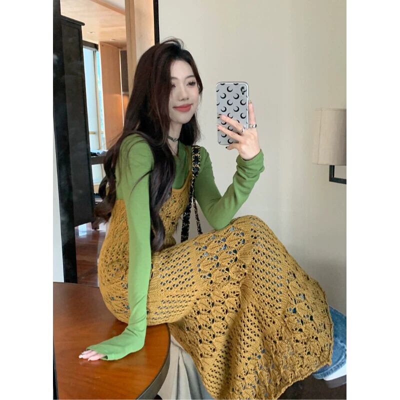 ニッチデザインファッションスーツスカート女性春 2024 新しいニットドレスブラウス底シャツ 2 点セット スプリング 春物 0921942095500929