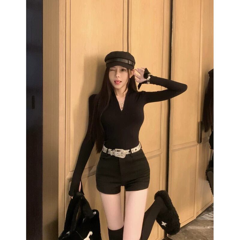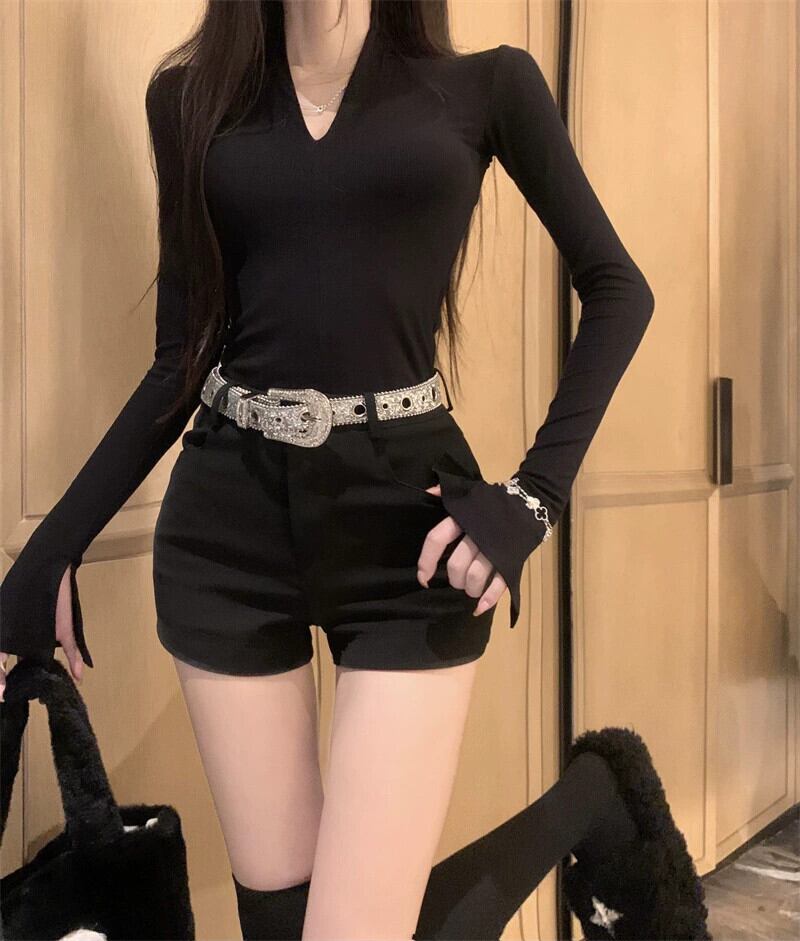 エドファッションスーツ女性 2024 春の新作 V ネックスリット長袖トップハイウエストショーツ 2 点セットトレンディな ロング スプリング 春物 ブルマー Vネック 0921914976396315