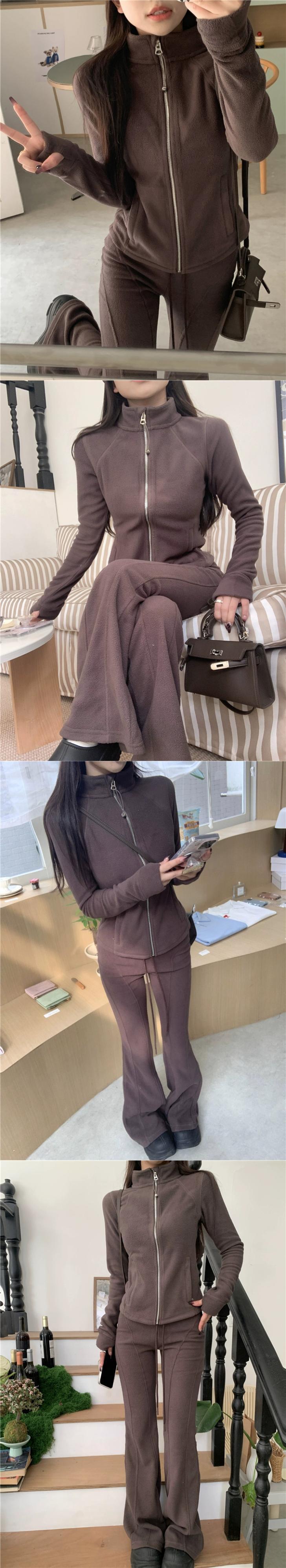 ソフトでワックス状のポーラーフリーススーツの女性の春 2024 新しいベルベットのスウェットシャツジャケットスリムフレアパンツ 2 点セット レッド スプリング 春物 0921988276844850