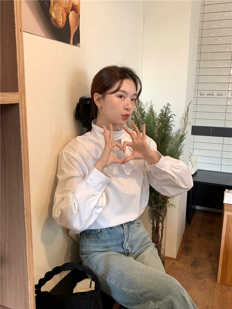 フランスのハイエンドスタンドアップカラー長袖シャツ女性 2024 年春の新スタイル多用途ルーズスリム弓シャツトレンディ ロング リボン スプリング 春物 092196924274856