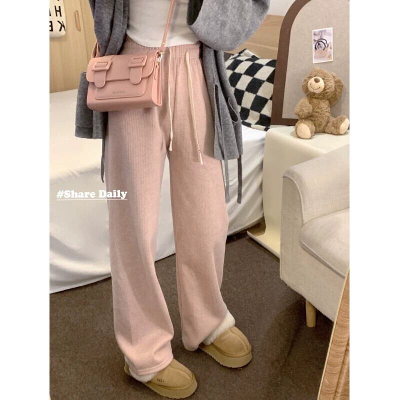 怠惰で多用途なベルベット肥厚カジュアルパンツ女性春 2024 新しいスタイル弾性ハイウエスト痩身ワイドレッグパンツ ハイウェスト エラスティック 伸縮 スプリング 春物 ワイドパンツ 0921994835558603