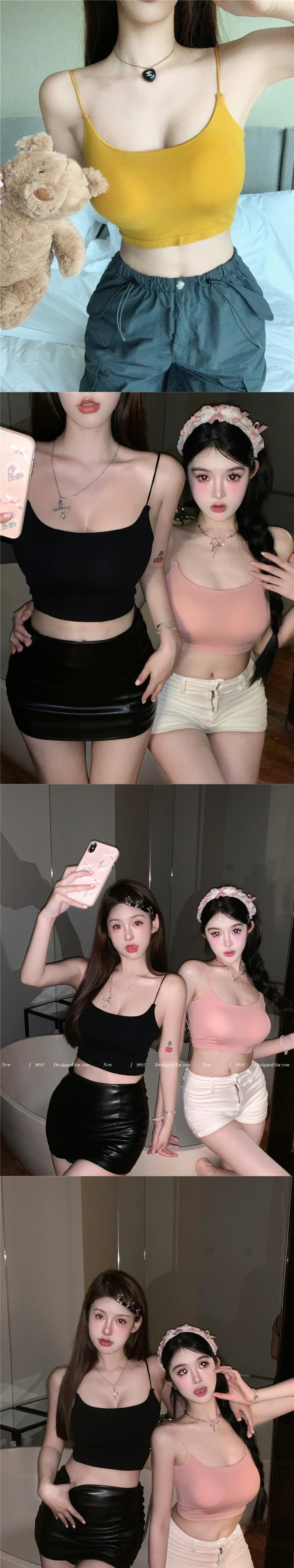キャンディーカラーの甘いネクタイキャミソールレディース 2024 年春の新作セクシーなスリムフィットショートトップ胸パッド付き レッド 大人ガーリー スウィート キュート カジュアル スプリング 春物 0921996633239611
