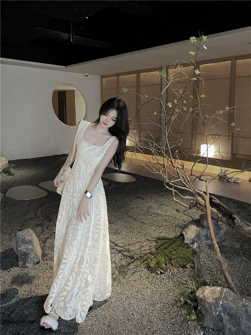 フランスのハイエンド中空サスペンダードレスの女性の春 2024 新しいスタイル優しい風ウエスト痩身レースロングスカート スプリング 春物 0921999268033519