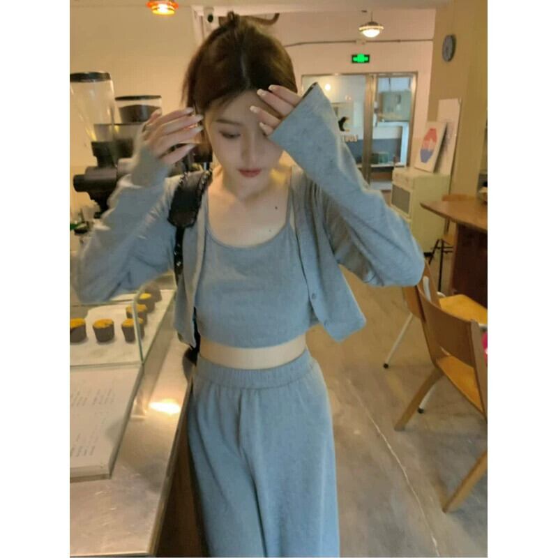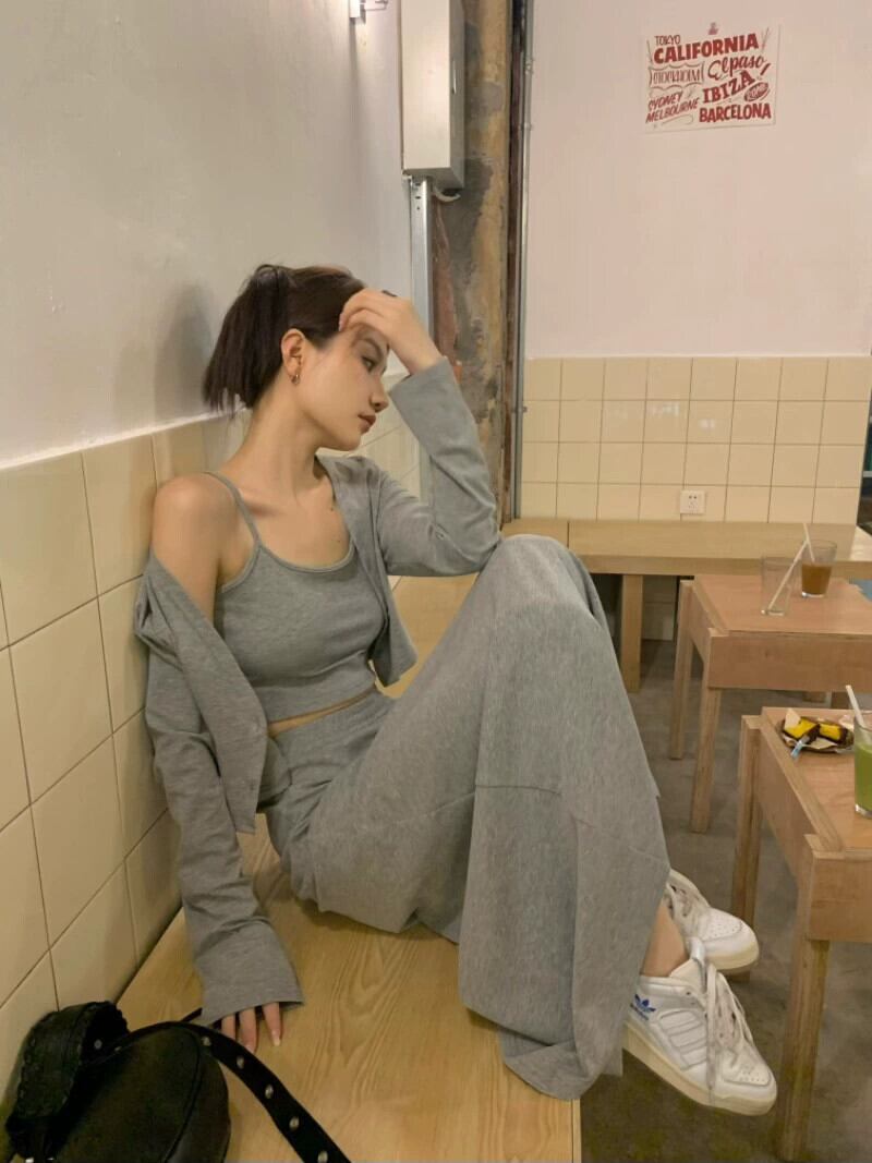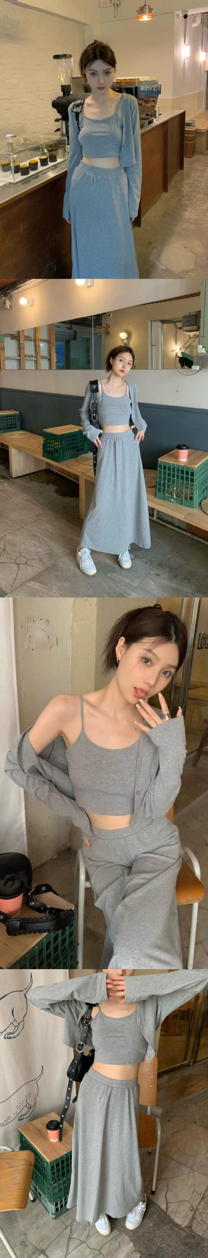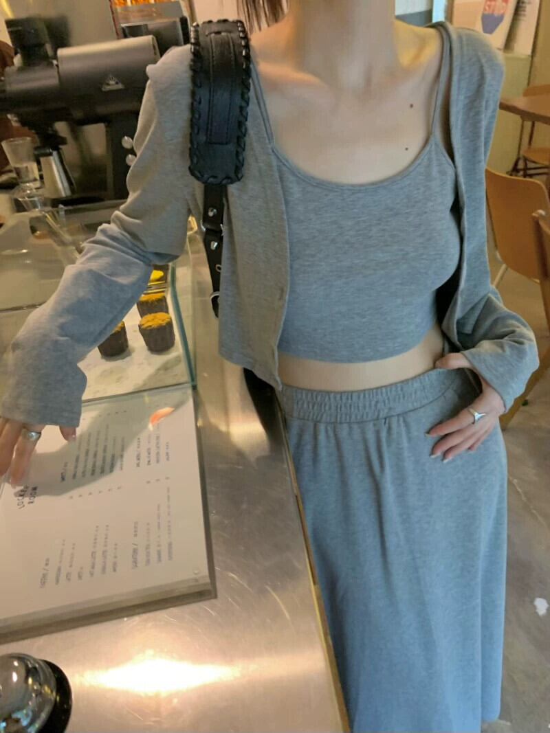 スーツ女性春アウターニットカーディガンキャミソールトップハイウエストスカートグレー 3 点セット ハイウェスト スプリング 春物 0921983060715530