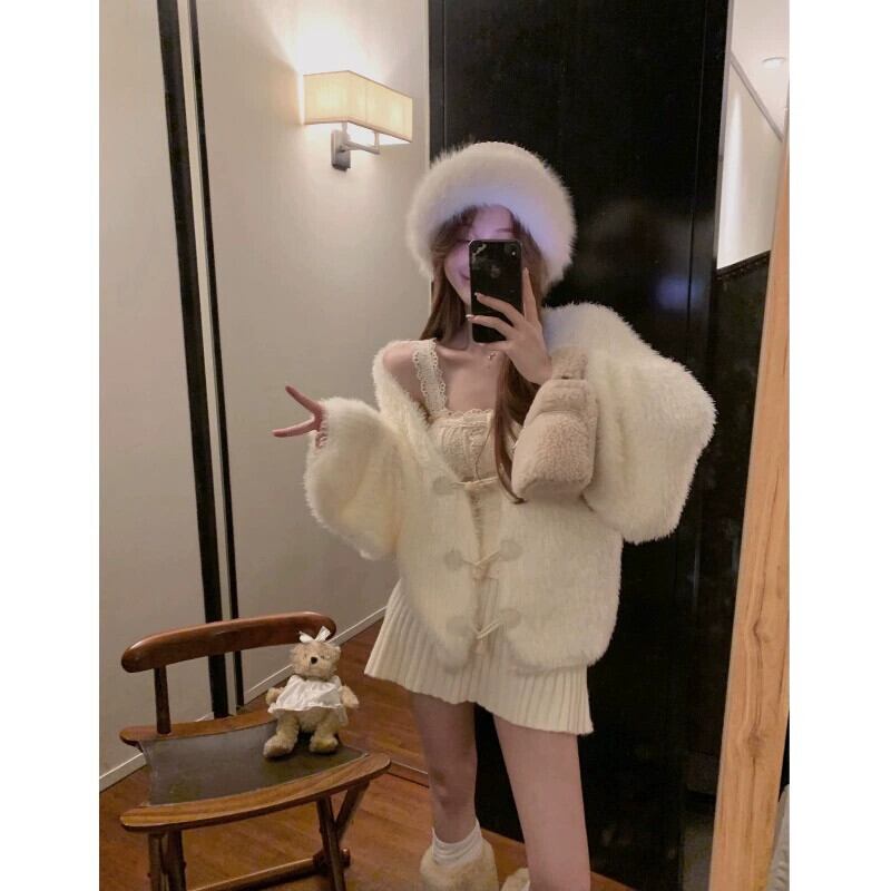 穏やかな風模造ミンクカーディガンセーター女性春 2024 新スタイル怠惰なソフトワックス状の緩い多目的セータージャケット スプリング 春物 0921928616750747