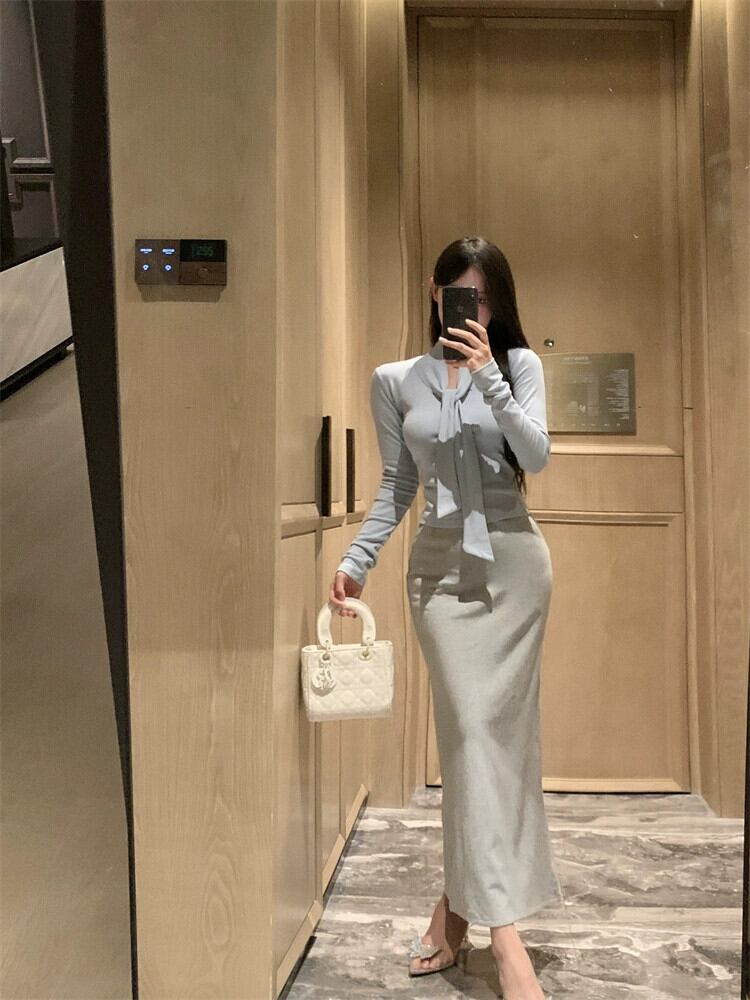 純粋な欲望穏やかなスタイルのファッションスーツの女性の春 2024 新しいストラップニットトップヒップカバースカート 2 点セット スプリング 春物 0921956758656235