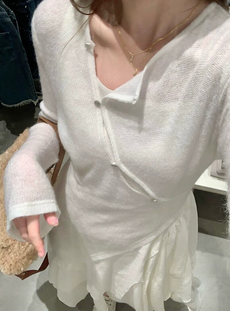 優しいスタイルのスーツ、イレギュラーな白いセーターの女性、早春のハイウエスト A ライン スカート、5 分丈スカート、見事な 2 点セット ホワイト スプリング 春物 Aライン 0921990425101059