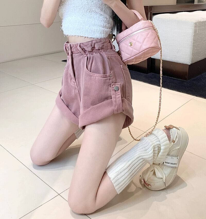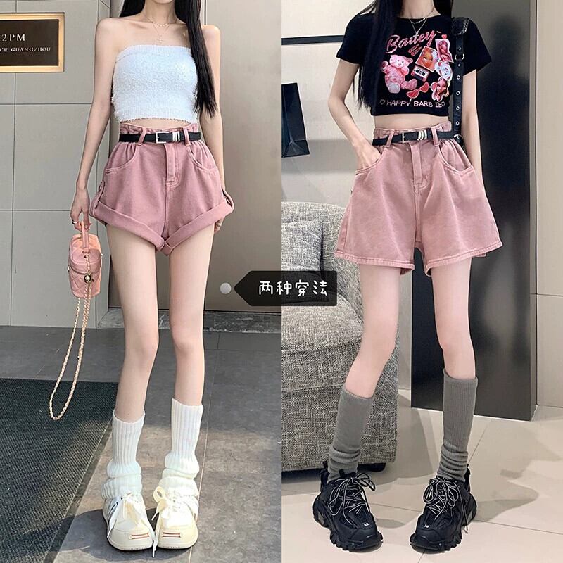ED カジュアルハイウエストスリムカールジーンズ女性 2024 年春の新しい多用途ルーズワイドレッグショーツ スプリング 春物 ブルマー 0921989831354633