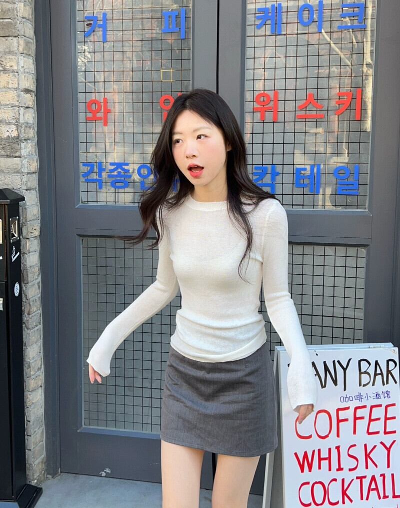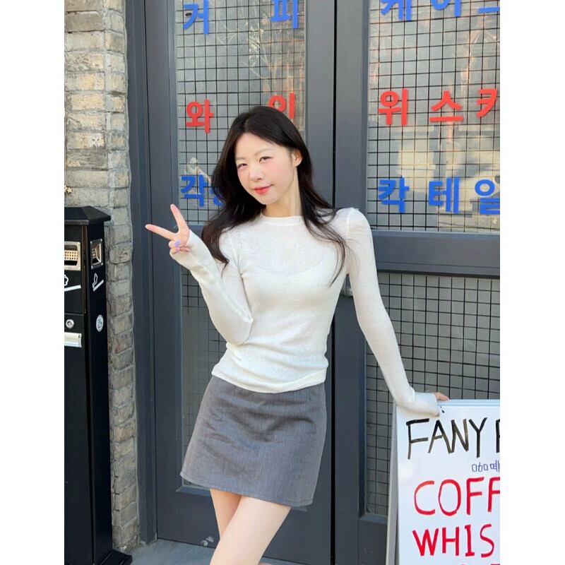 ラウンドネック無地多用途長袖セーター女性 2024 年春の新しいスタイルのスリムフィットインナーレイヤリングトップ ロング スプリング 春物 Oネック ソリッドカラー 0921912791979645