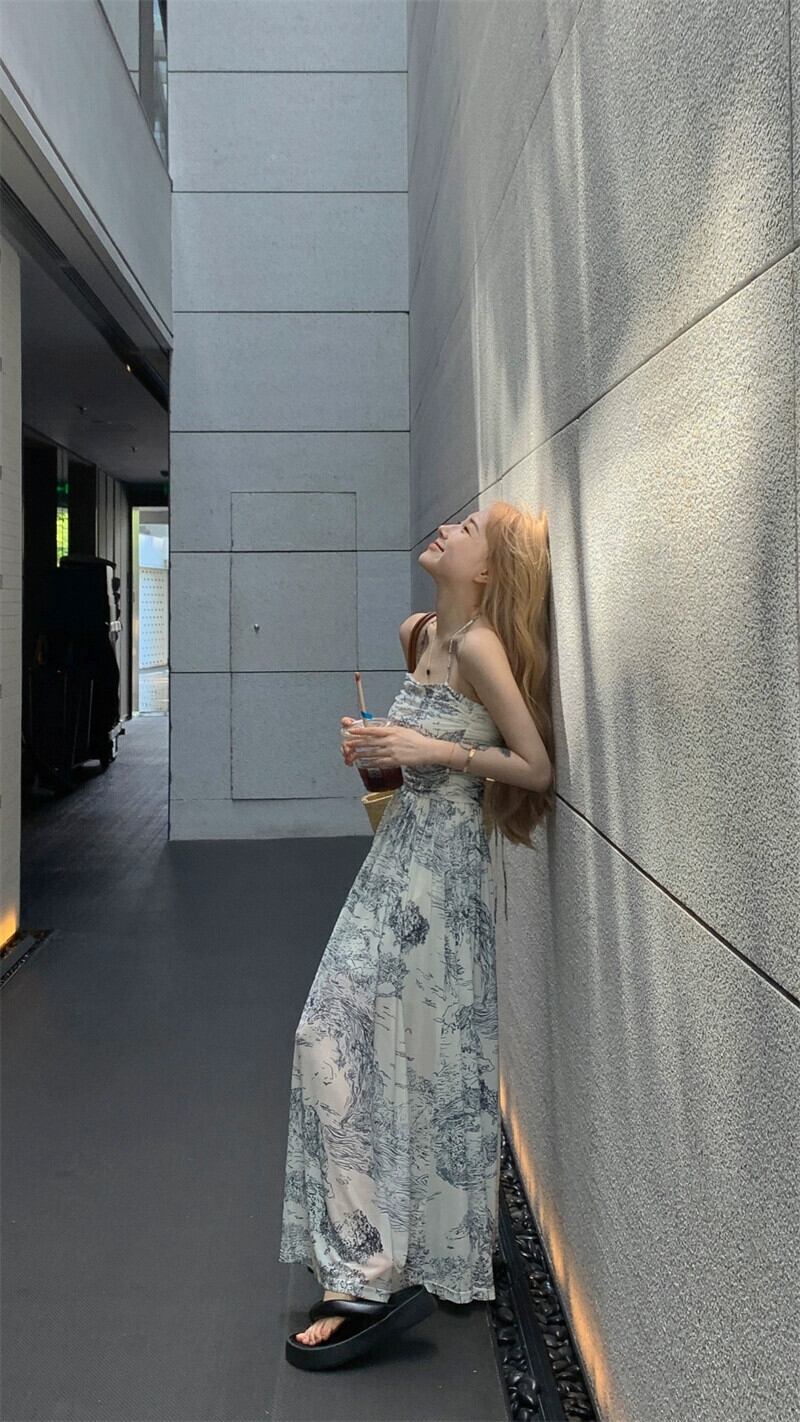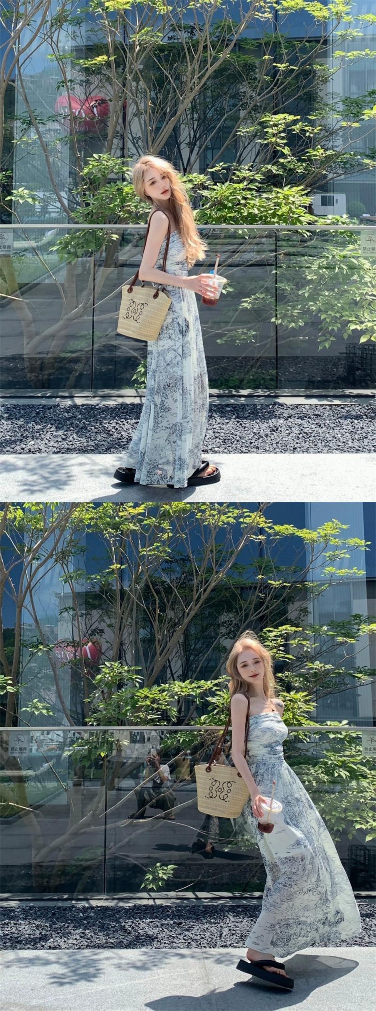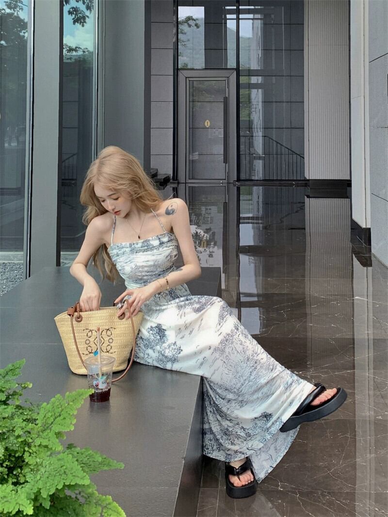 水墨画雰囲気サスペンダードレス女性早春 2024 新しいスタイル気質新しい中国風のウエスト a ラインロングスカート スプリング 春物 Aライン 092197723247839