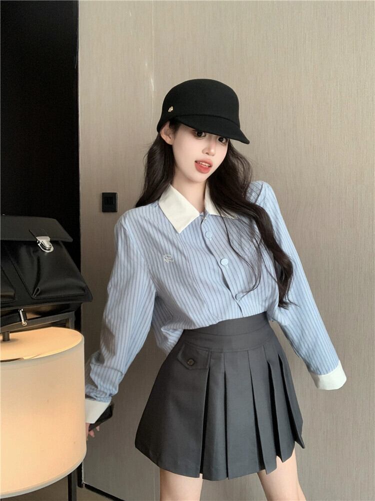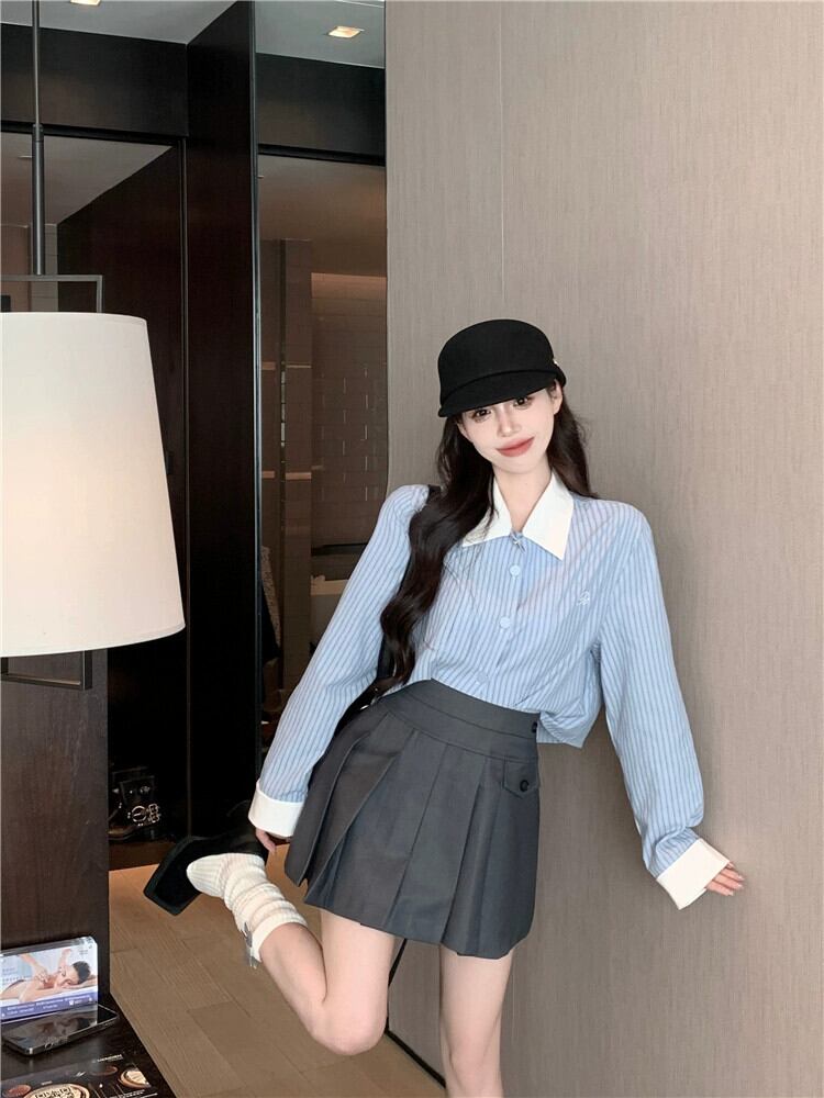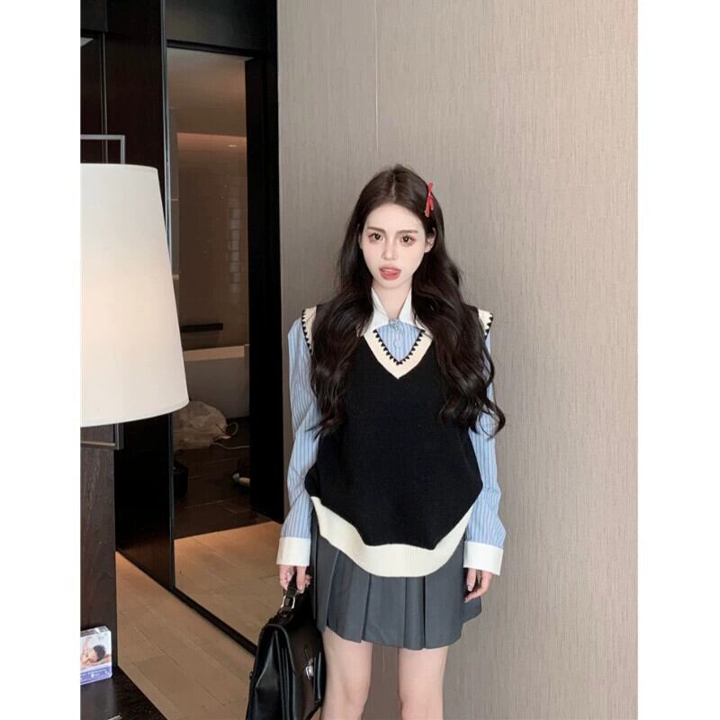 ed カジュアルスーツスカート女性 2024 春の新しい対照的なカラーのシャツがベストを重ねて痩身スカート 3 点セット スプリング 春物 0921987402225979