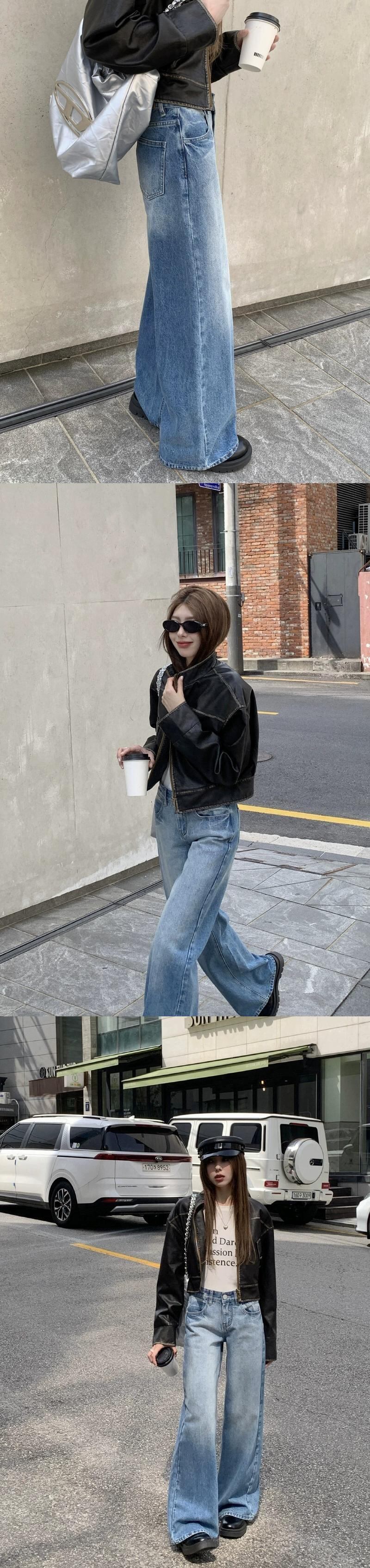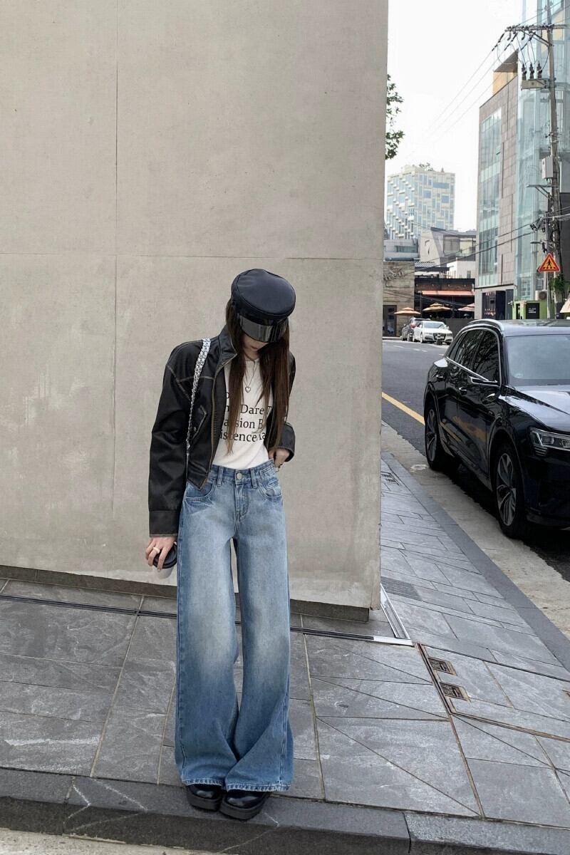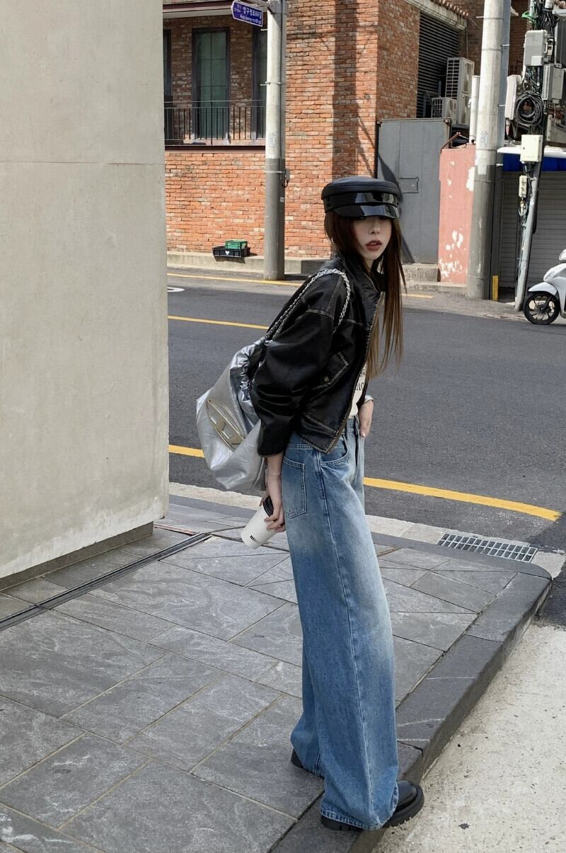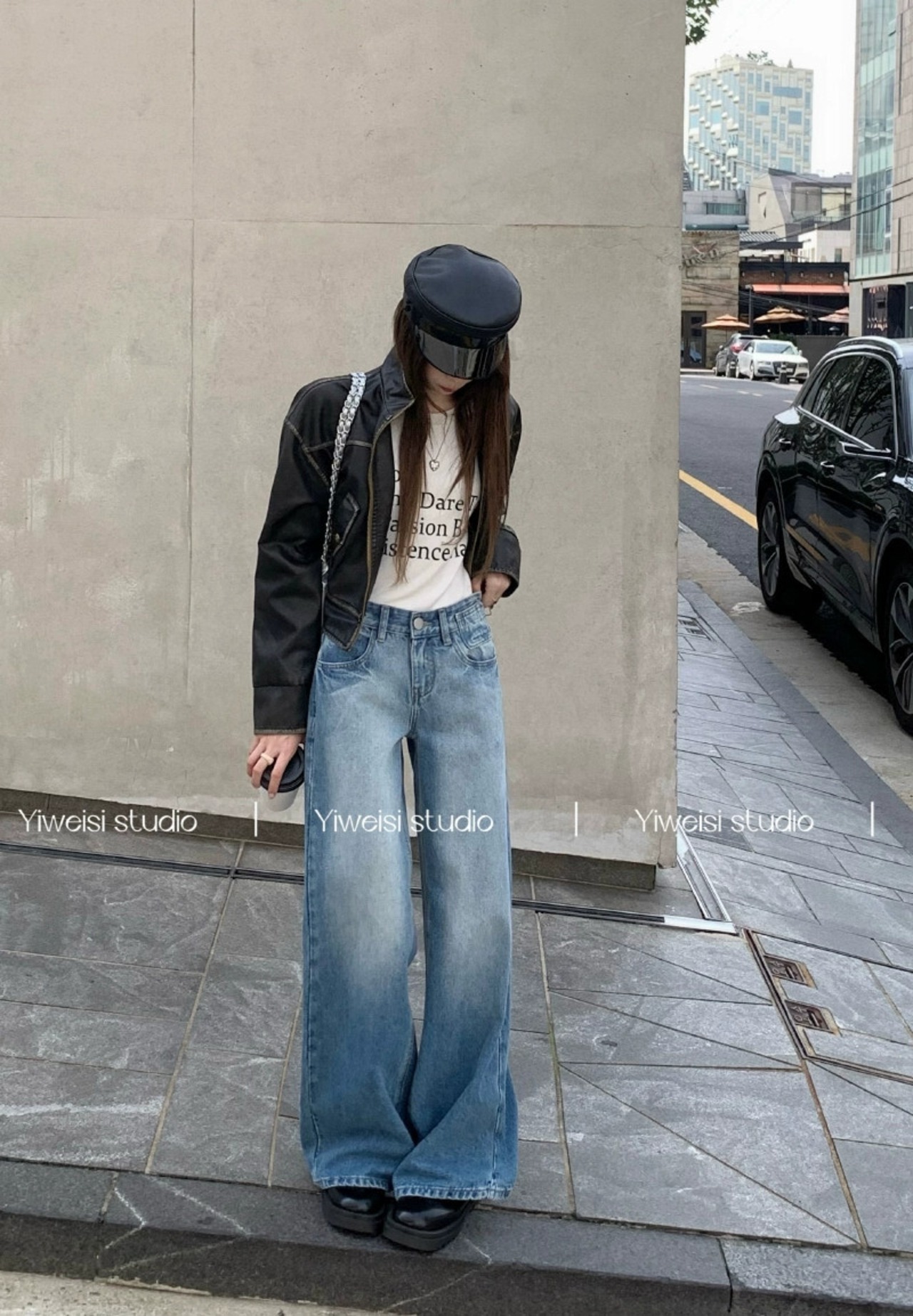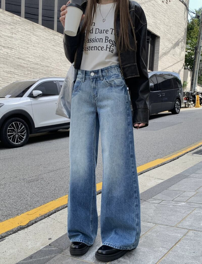 春のブルーウォッシュワイドレッグジーンズレディースアメリカンレトロルーズハイウエストストレートパンツカジュアルフロアレングスパンツ スプリング 春物 092193744789086