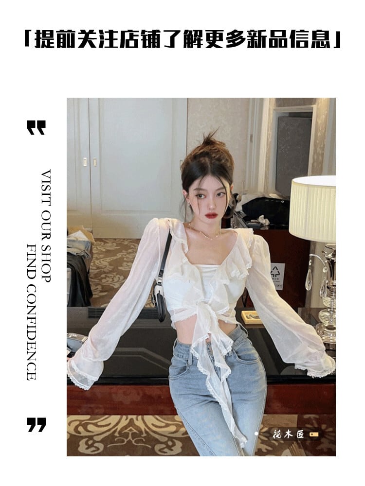 気質フリルトランペット長袖シャツ女性の 2024 年春の新デザインショート日焼け止めシャツブラウス ロング スプリング 春物 0921946325841673