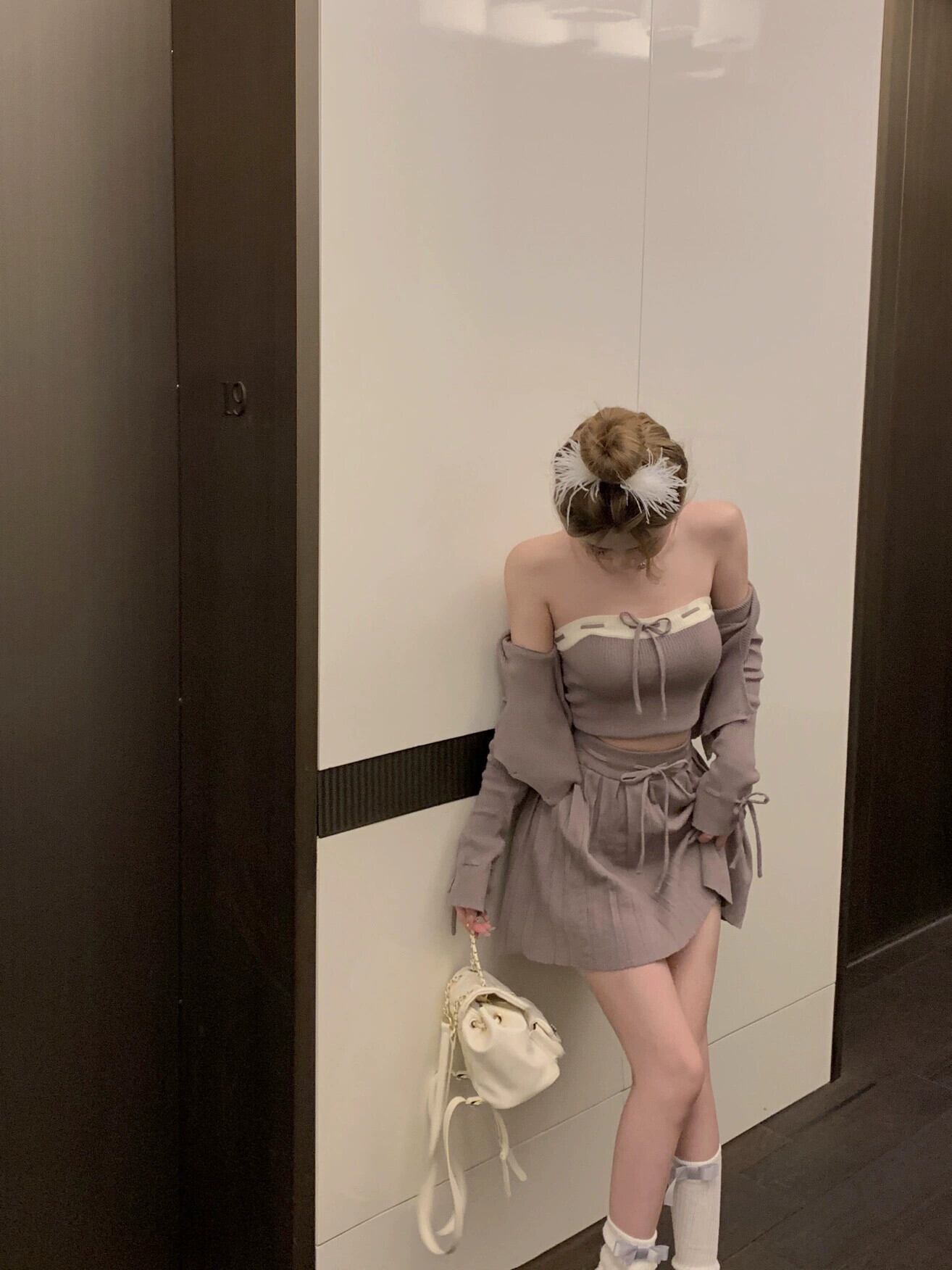 バレエ スタイル スーツ 春の甘いネクタイ セクシーなチューブ トップ カーディガン トップ ハイウエスト スカート スカート 3 点セット ハイウェスト 大人ガーリー スウィート キュート カジュアル スプリング 春物 0921940593634360