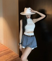 ホットガール偽ツーピーススプライシングデニムスカート女性の春スリム超ショートスカートプリーツスカート編生エッジスカート スプリング 春物 092199287830282