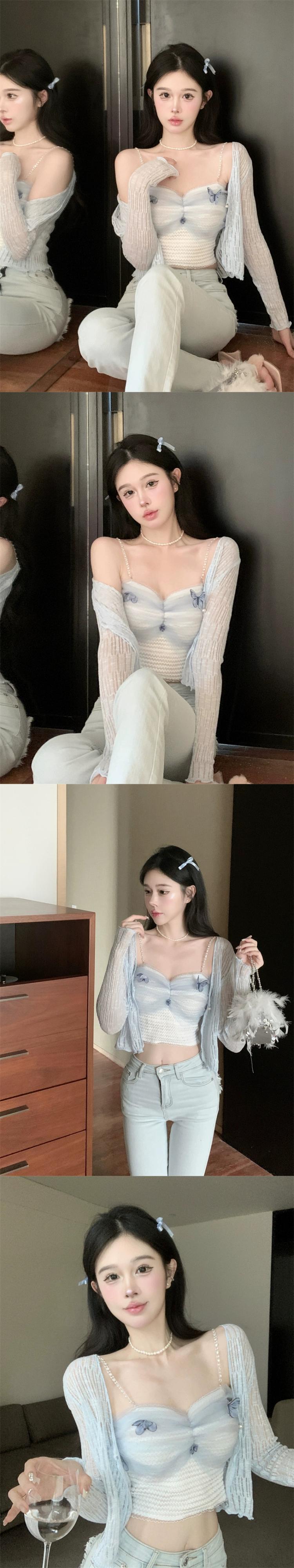 立体蝶メッシュステッチラインストーンサスペンダーレディース2024春新作純粋な欲望甘いスリムベストトップ 大人ガーリー スウィート キュート カジュアル スプリング 春物 ピュア 0921995384013995