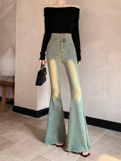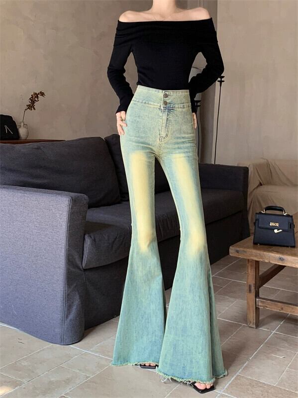 ED ハイウエストスリムフィットフレアローエッジジーンズ女性 2024 春の新しい痩身ワイドレッグファッションフロアレングスパンツ レッド スプリング 春物 0921972469613505