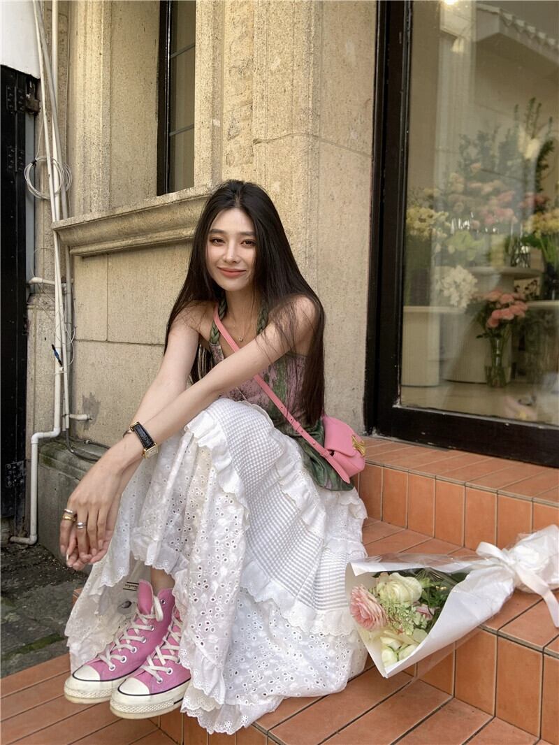 甘くて優しいスタイルの白かぎ針編みスカートレディース 2024 春新作ハイウエストスリム万能 A ラインロングスカート ホワイト 大人ガーリー スウィート キュート カジュアル スプリング 春物 Aライン 0921993644581483