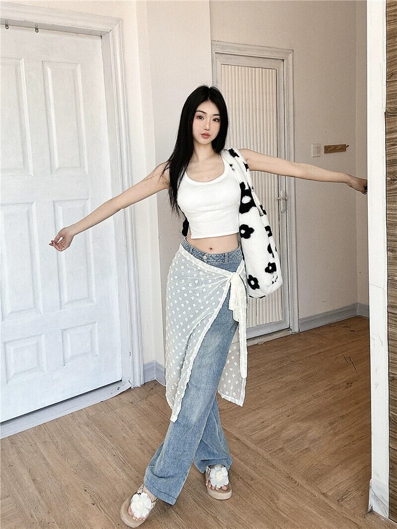 スタイルシースルーメッシュレーススカート女性の 2024 春の新しいスタイルハイウエストスタックバットカーテンエプロン A ラインスカート ハイウェスト スプリング 春物 Aライン 0921966928261887
