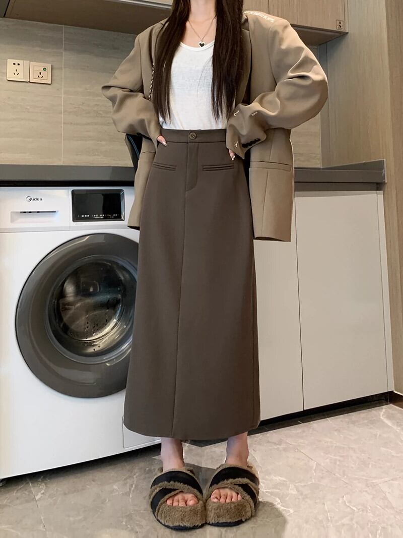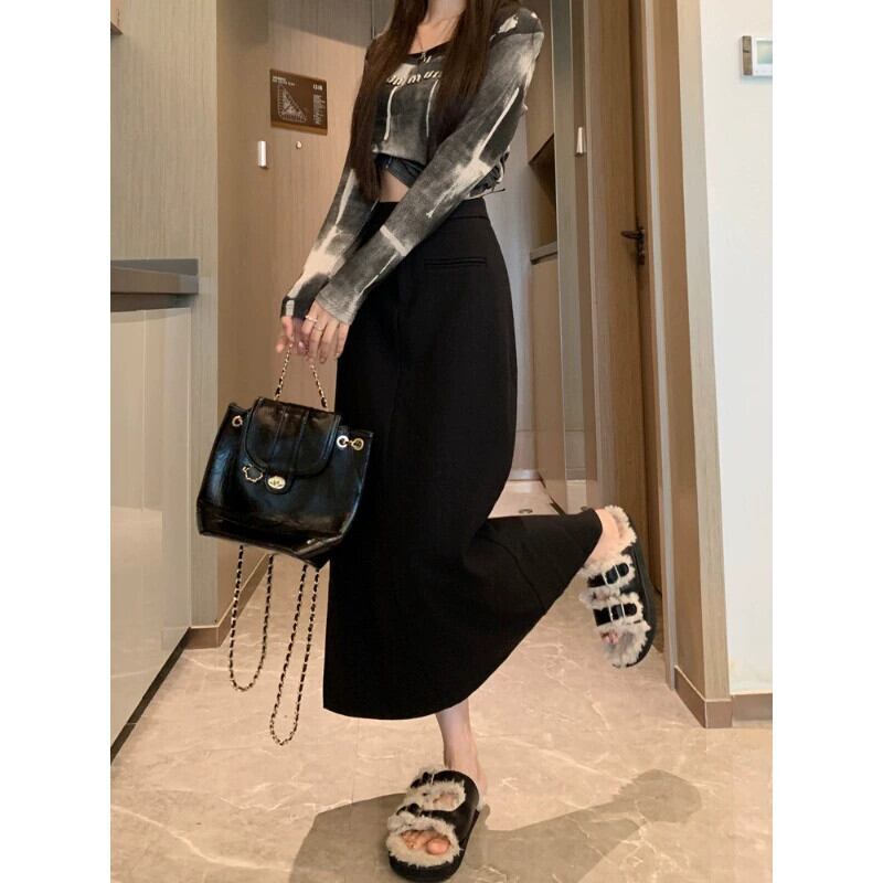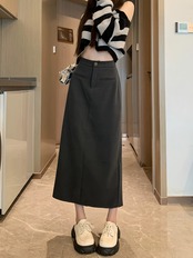 気質とファッショナブルなデザインのストレートスカートの女性の春 2024 新しいレトロハイウエストスリムミドル丈 A ラインスカート スプリング 春物 Aライン 0921987845856684