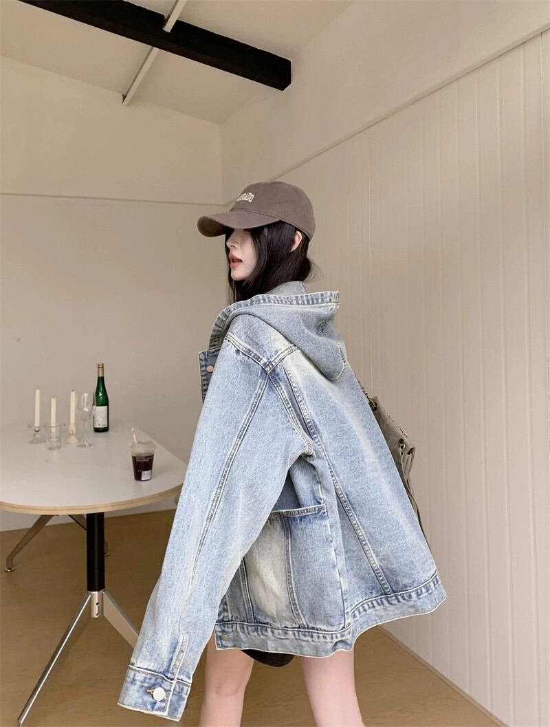 可能ルーズウォッシュデニムフード付きジャケット女性春 2024 新作インカップルスタイル多目的ジャケットトップ スプリング 春物 0921938243206984