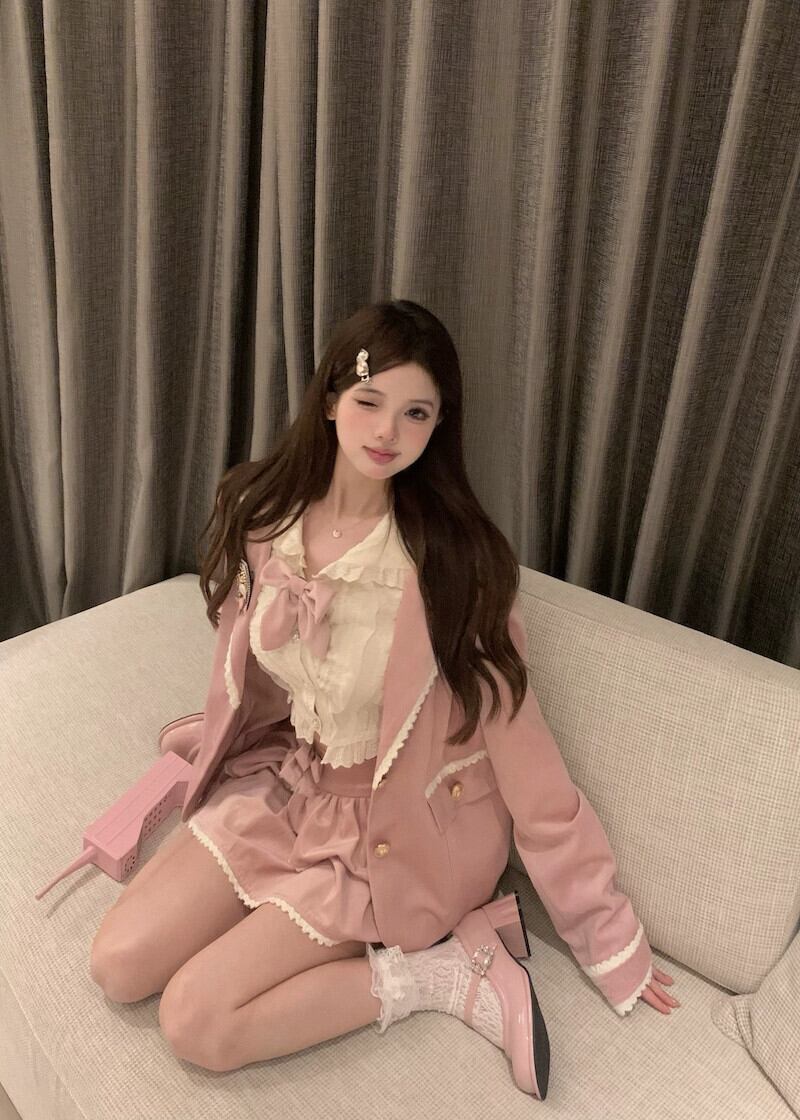スタイルスイートガールスーツ女性春 2024 スーツジャケット蝶ネクタイシャツスカート 3 点セット リボン 大人ガーリー スウィート キュート カジュアル スプリング 春物 0921952102305329