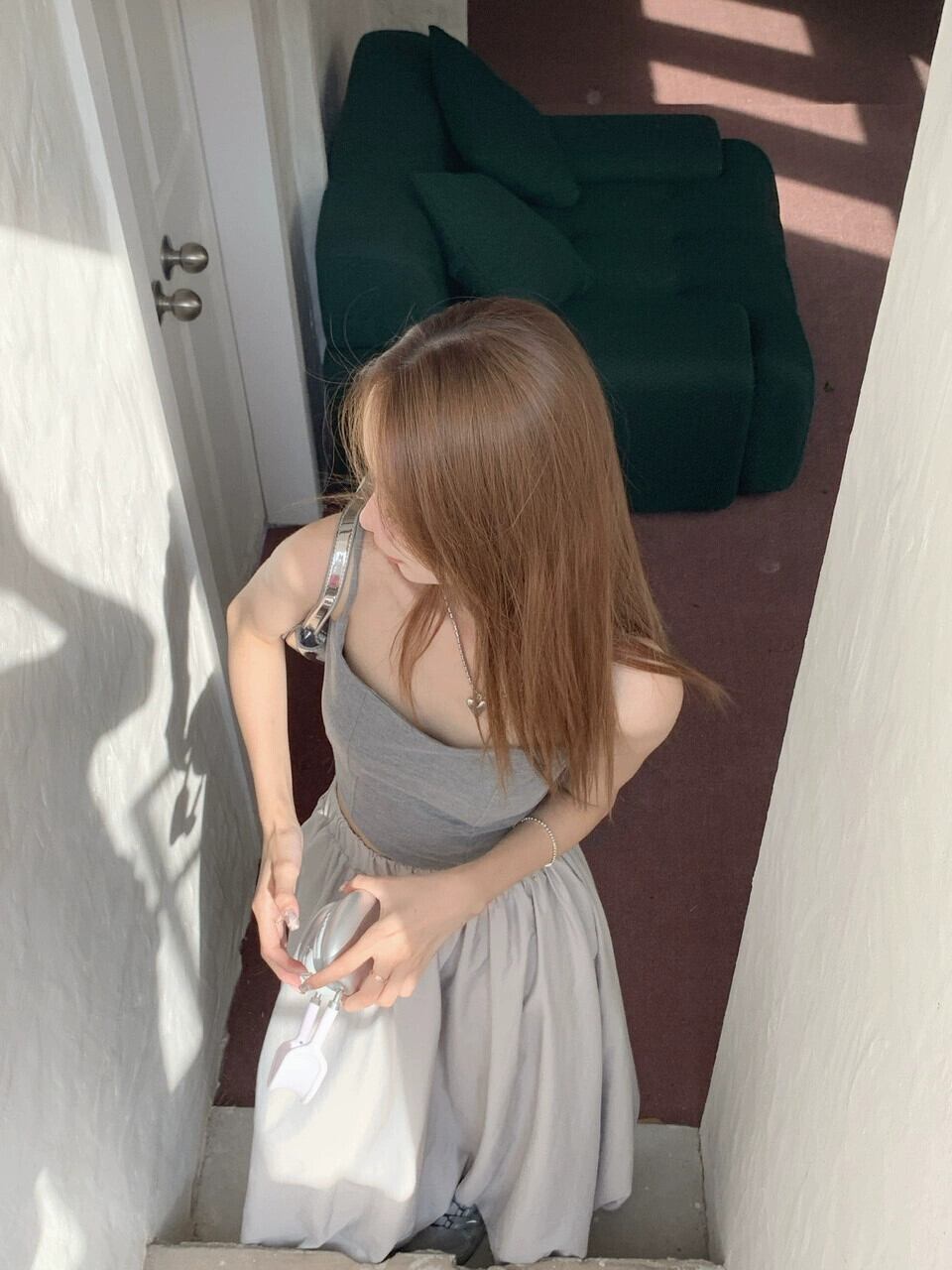 レトロスタイルグレーサスペンダートップ女性 2024 春の新作ふわふわ花のつぼみロングスカートスカート 2 点セット スプリング 春物 フラワーデザイン 09219784522749