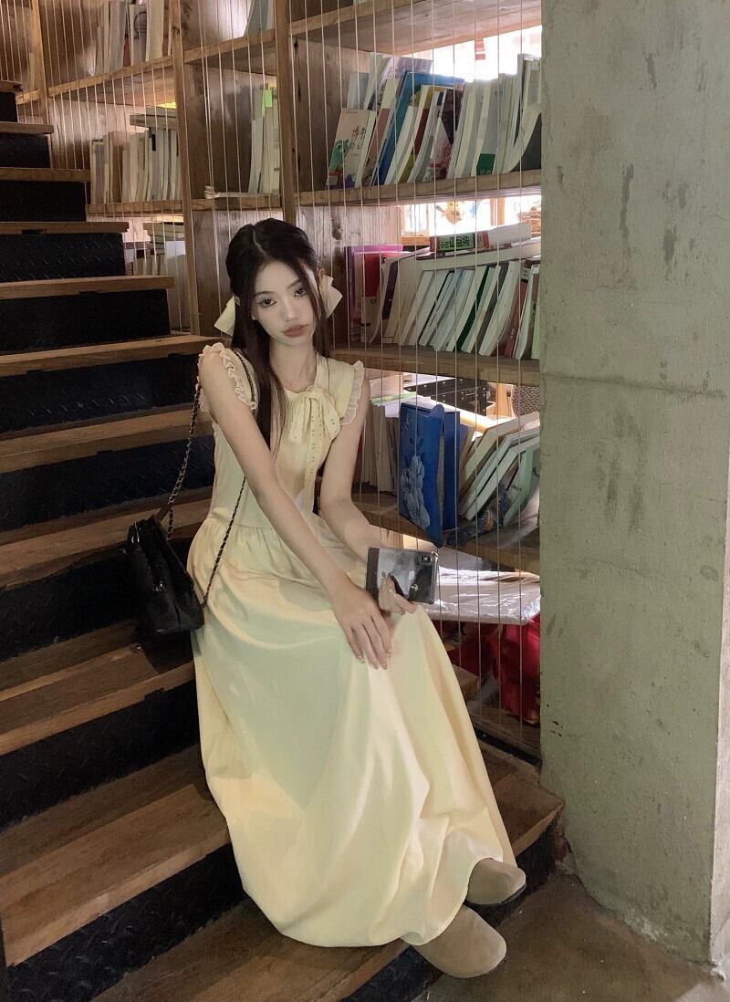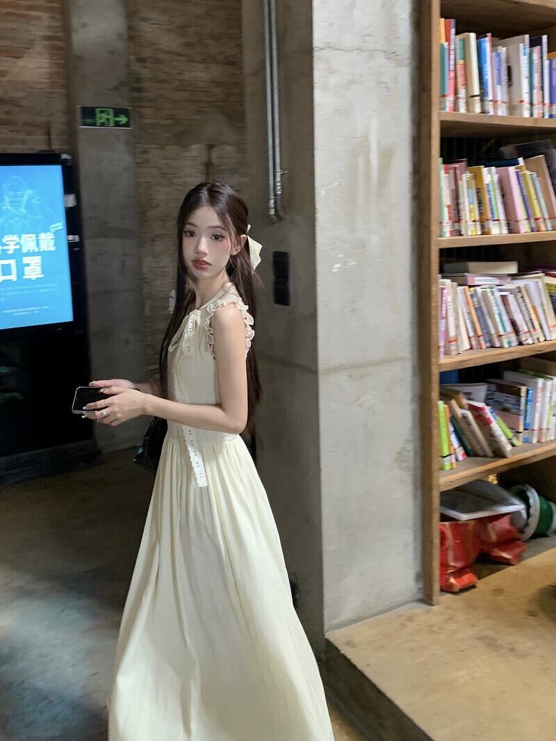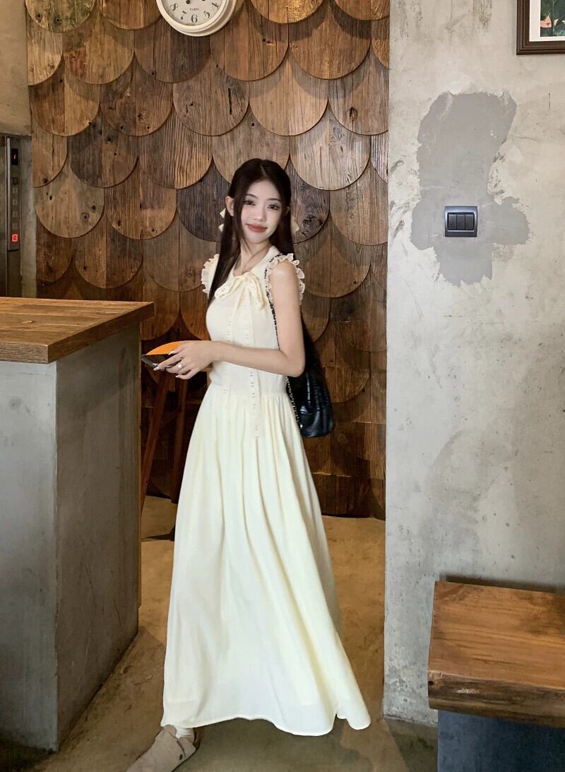 エド レース リボン ワンピース レディース 初春 ノースリーブ タンクトップ スリムウエスト Aラインスカート ロングスカート スプリング 春物 0921975134126563