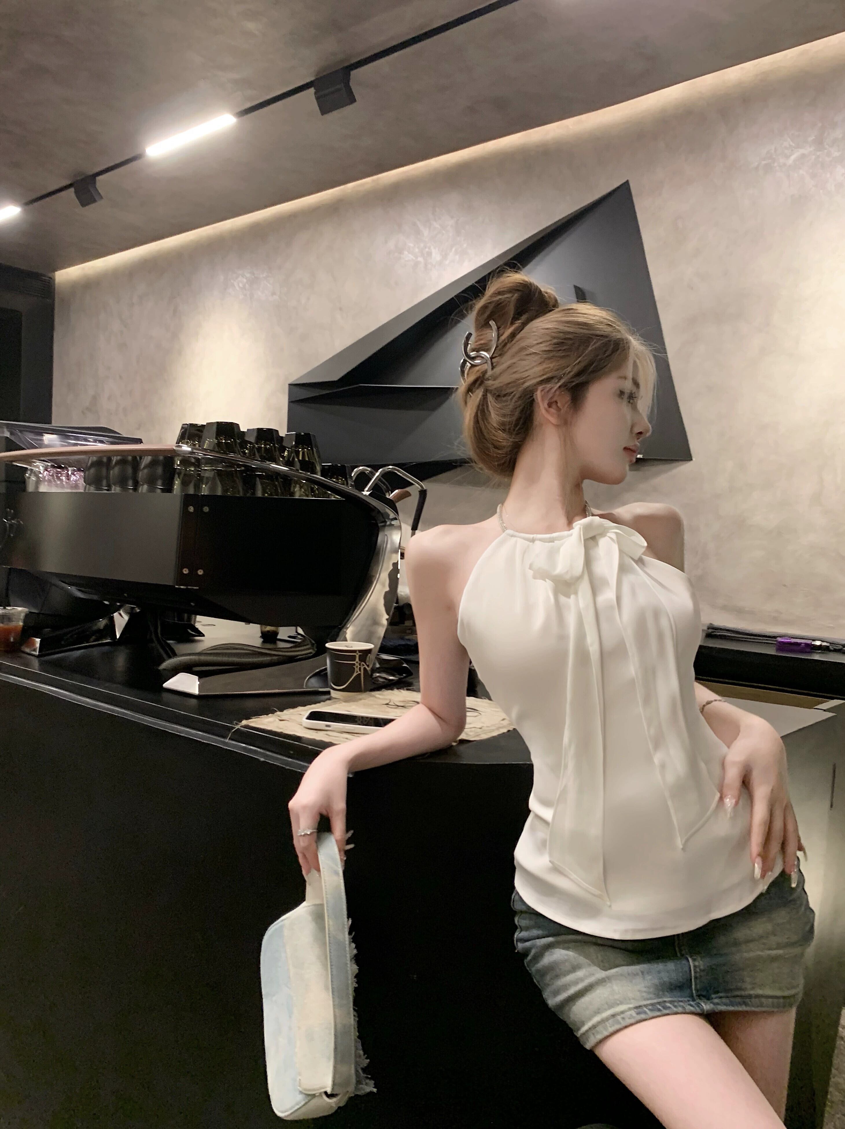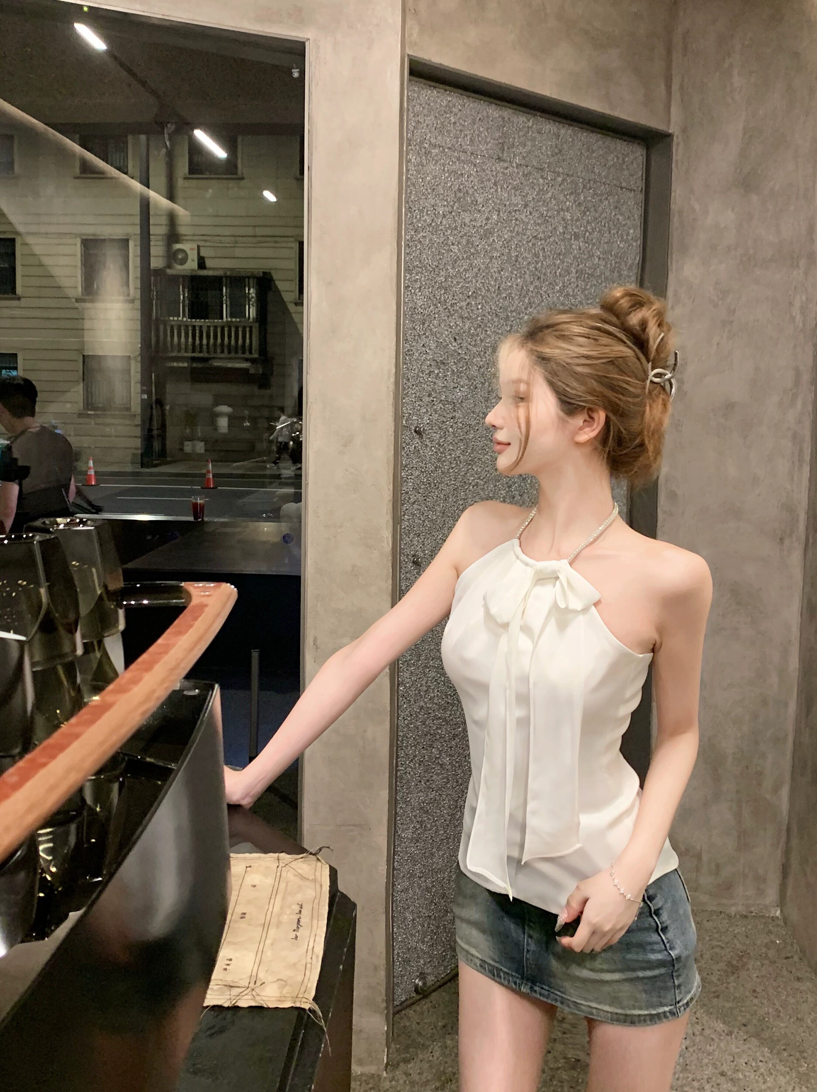 純粋な欲望の気質とハイエンドのホルターネックベスト女性 2024 年春の新しいバックレスサテンスリムウエストノースリーブトップ スプリング 春物 0921959226645195