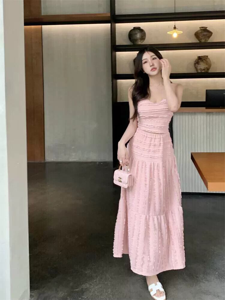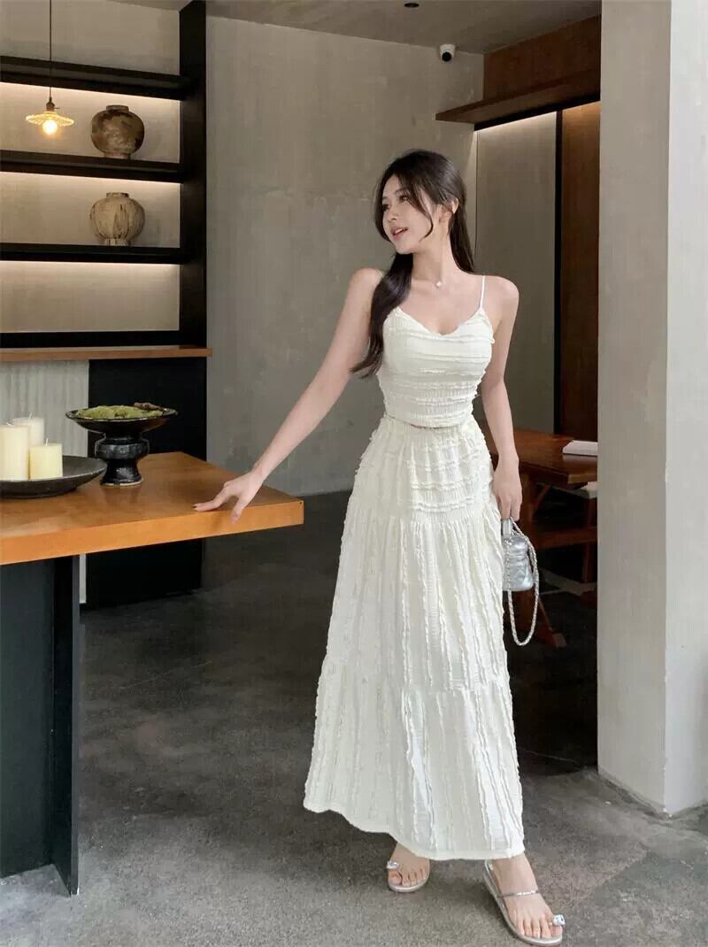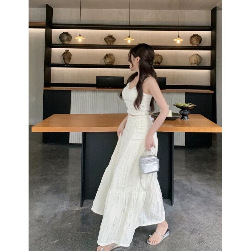 優しいスタイルのファッションスーツ女性 2024 春の新しいセクシーなキャミソールハイウエストスカート 2 点セット ハイウェスト スプリング 春物 0921921998307084