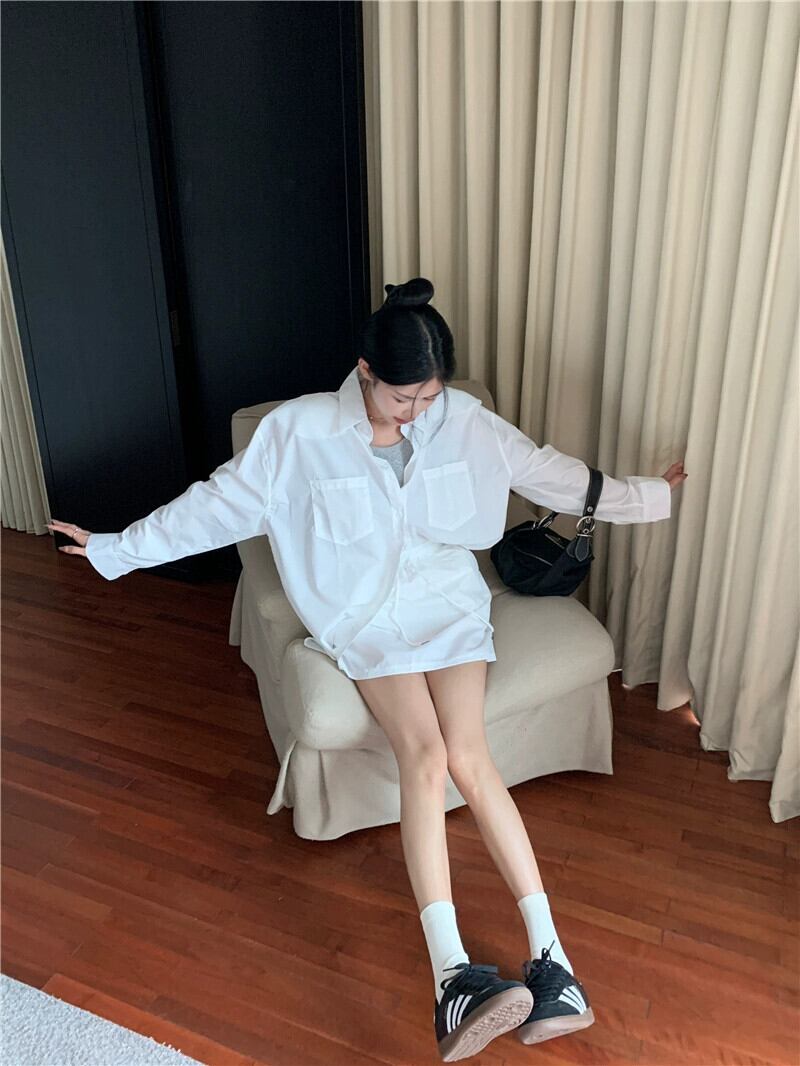 気質多彩なファッションスーツの女性の 2024 年春の新しいルーズ長袖ソリッドカラーのシャツとスカートの 2 点セット ロング スプリング 春物 0921950287777480