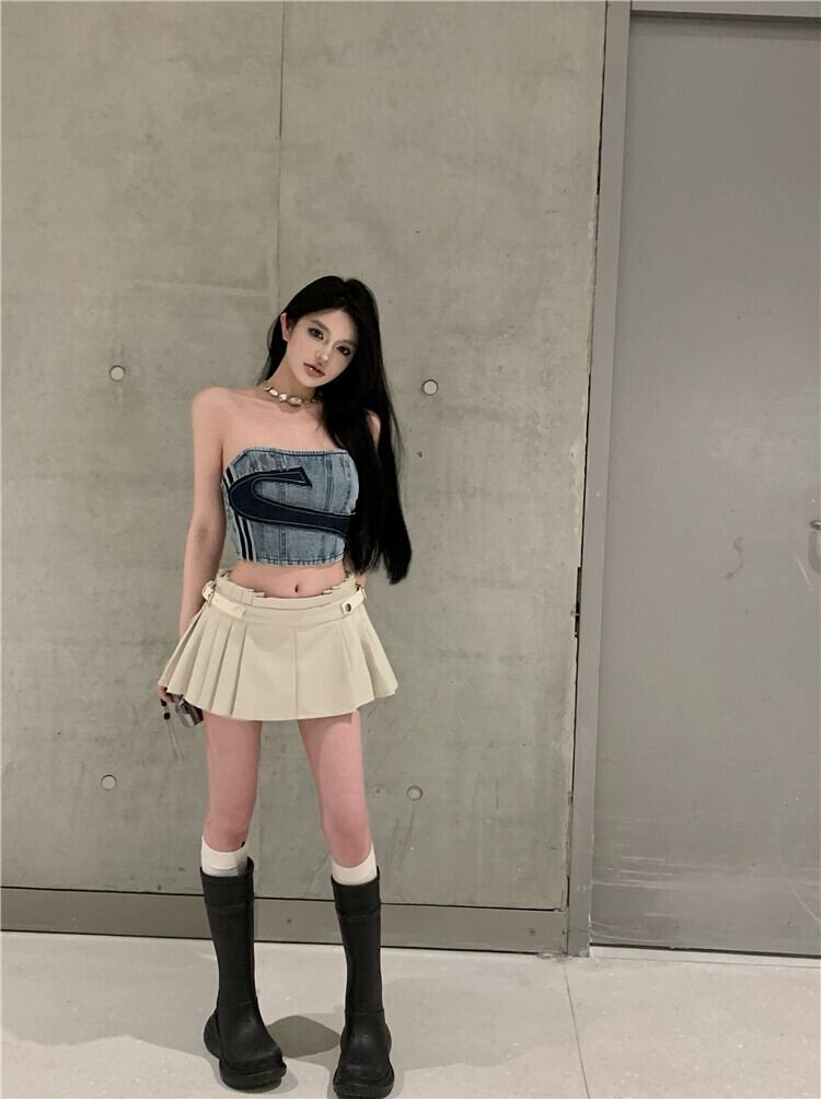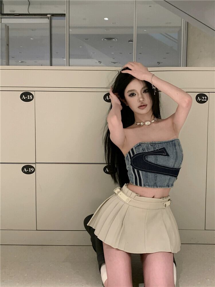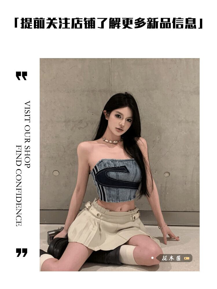 ホットストリートスタイルショートデニムチューブトップ女性夏 2024 新しい多用途セクシーなアウターウェア胸トップ サマー 夏物 0921929043414096