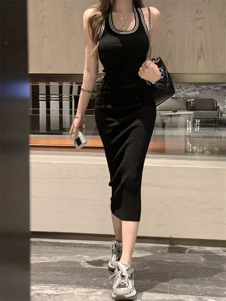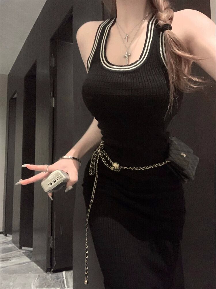 セクシーなホットガールノースリーブベストドレス女性の春 2024 多用途スリムフィットミッドレングスヒップスカート スプリング 春物 0921990381948147