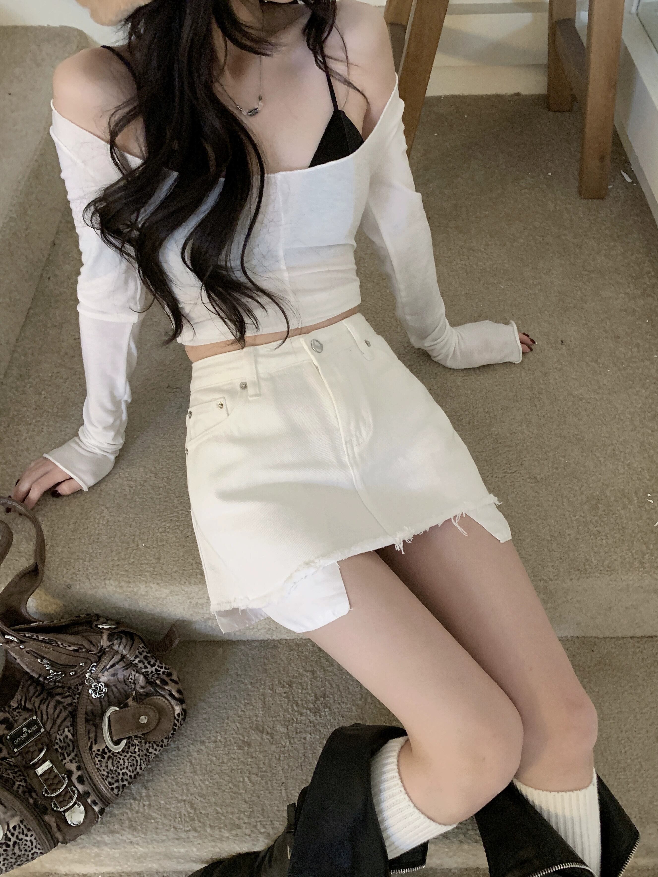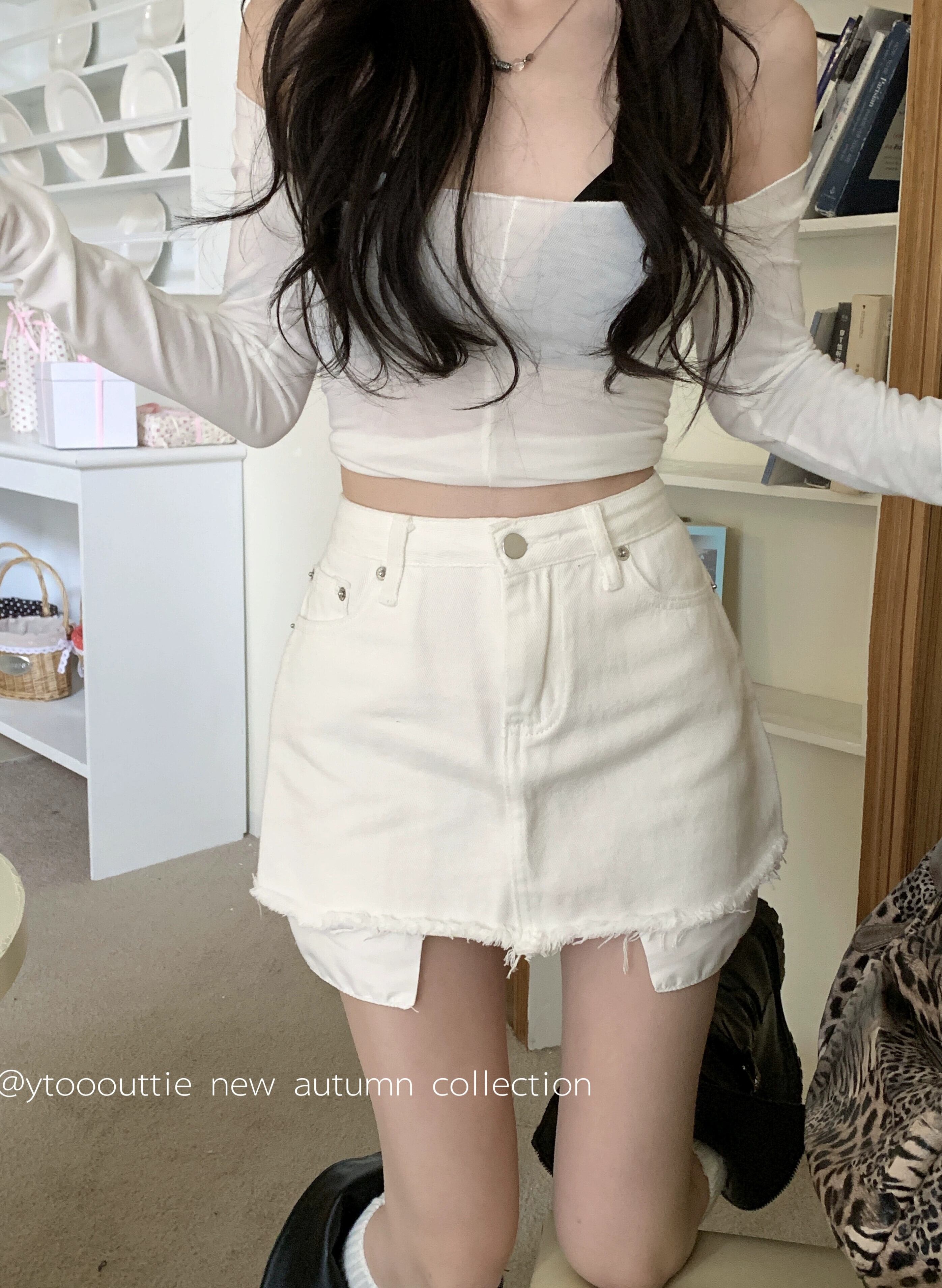 偽ツーピースポケットスプライシングスカート女性 2024 春の新しいハイウエストスリム多用途デニム A ラインスカート スプリング 春物 Aライン 0921947874305573