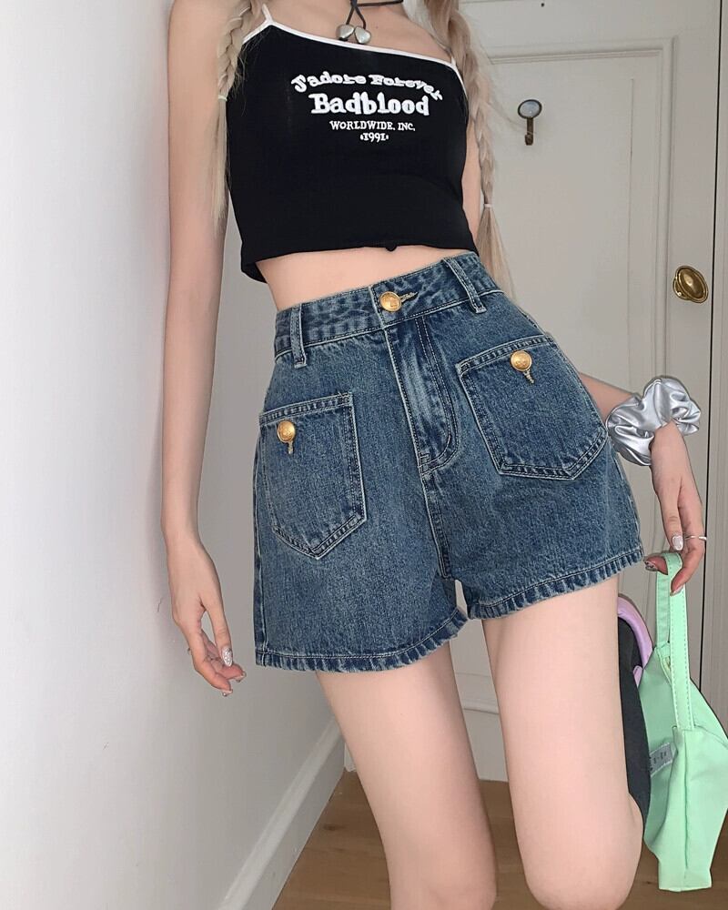 と汎用性の高いスタイルウォッシュジーンズ女性 2024 年春の新しいスタイルのハイウエストルーズスリミングワイドレッグショーツトレンディな ハイウェスト スプリング 春物 ブルマー ワイドパンツ 0921911213852419