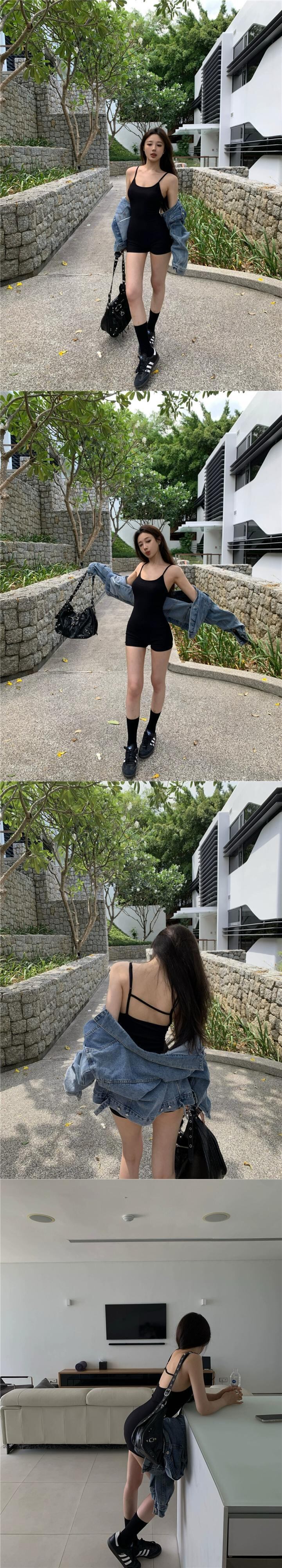 エドバック中空サスペンダージャンプスーツ女性春 2024 新しいセクシーなネクタイスタイル痩身ショーツ スプリング 春物 ブルマー 0921932255048817
