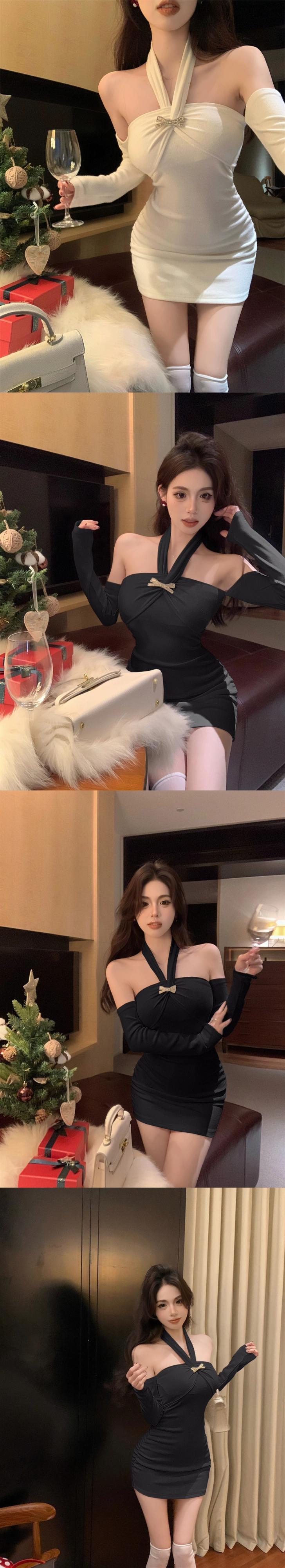 純粋な欲望の気質ホルターネックデザインドレス女性の 2024 年春の新しいスリムフィットセクシーなヒップカバーショートスカート スプリング 春物 0921938099866211